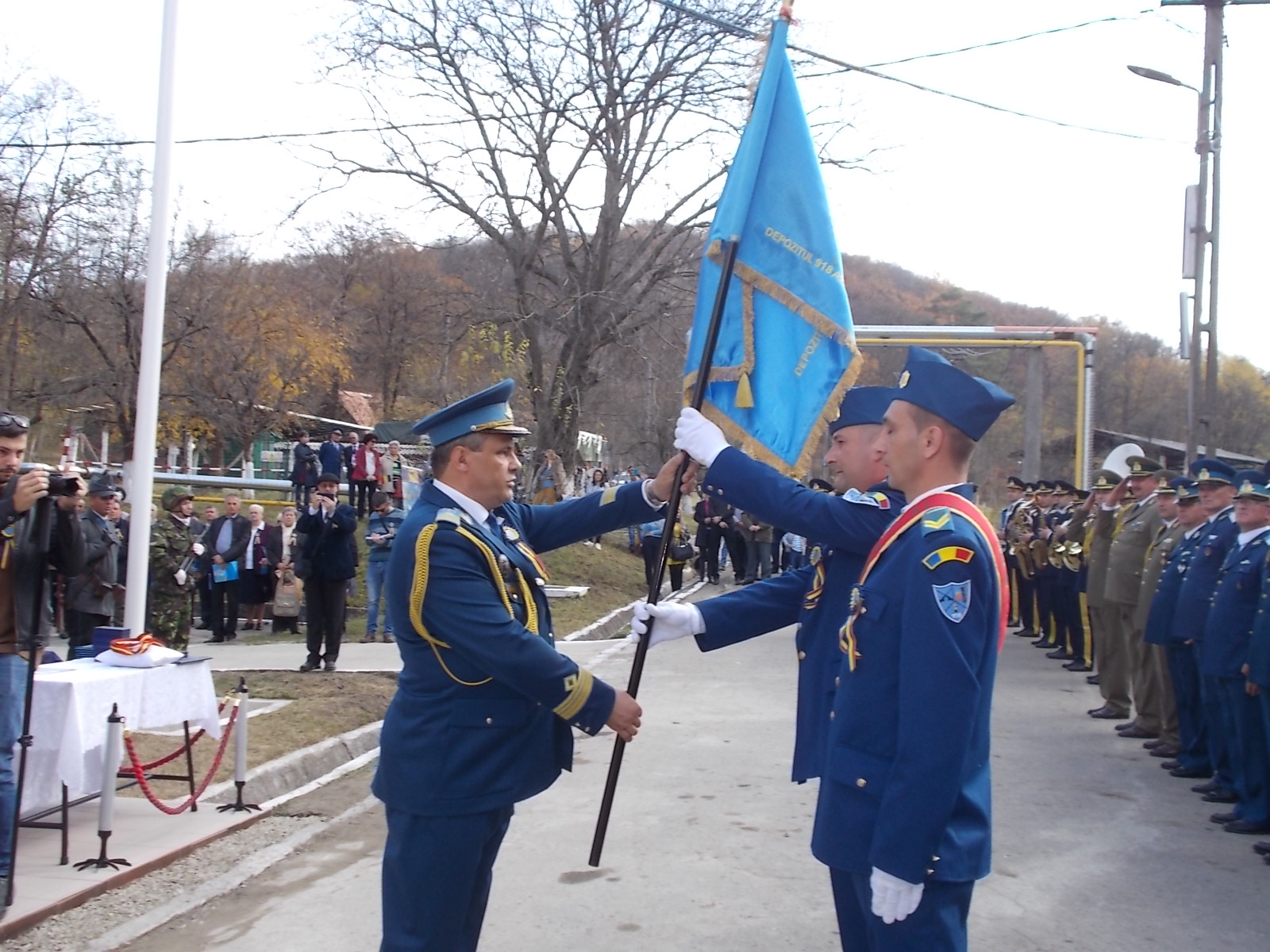 Marți, unitatea care se află în subordinea Bazei 91 Logistice a Forțelor Aeriene a primit drapelul de identificare a unității, dar și emblema de onoare a Statului Major al Apărării. În jurul amiezii a fost organizat un ceremonial militar și religios de sărbătorire a zilei unității militare medieșene. Cu acest prilej, a fost înmânat drapelul de identificare a unității de către comandatul Bazei 91 Logistice a Forțelor Aeriene, în subordinea căreia se află Depozitul 918 Armament și Muniții Mediaș. Totodată, unitatea din Mediaș a primit și emblema de merit a Statului Major al Apărării, iar drapelul de identificare a fost sfințit în cadrul unui ceremonial religios.