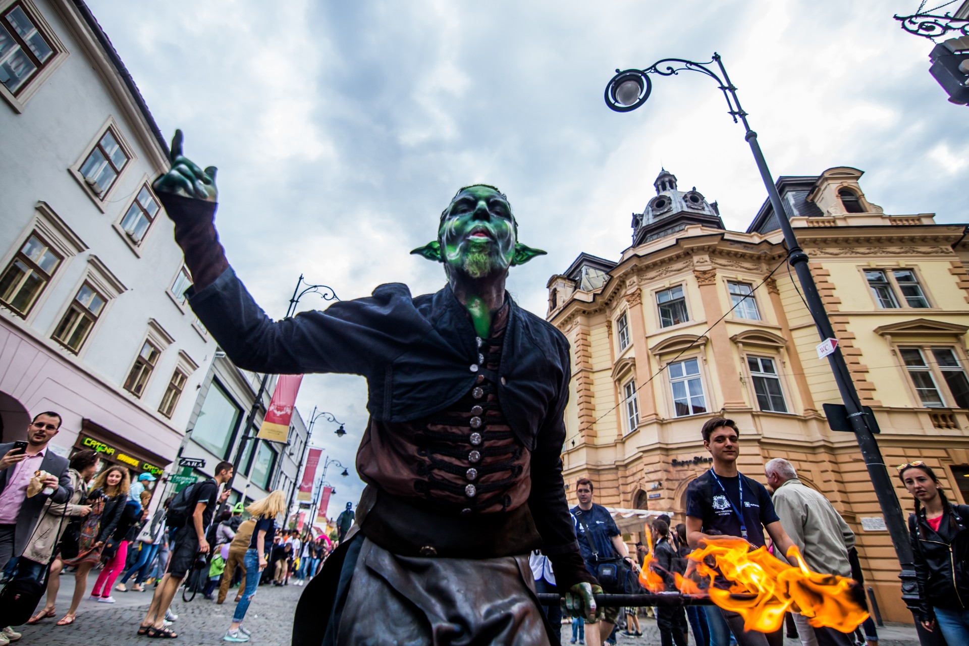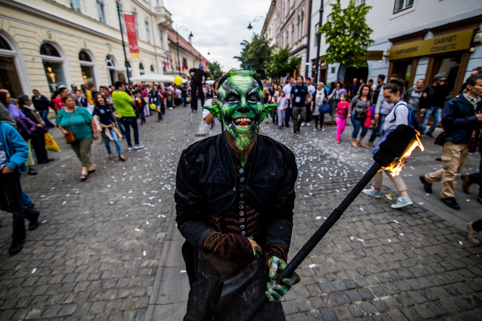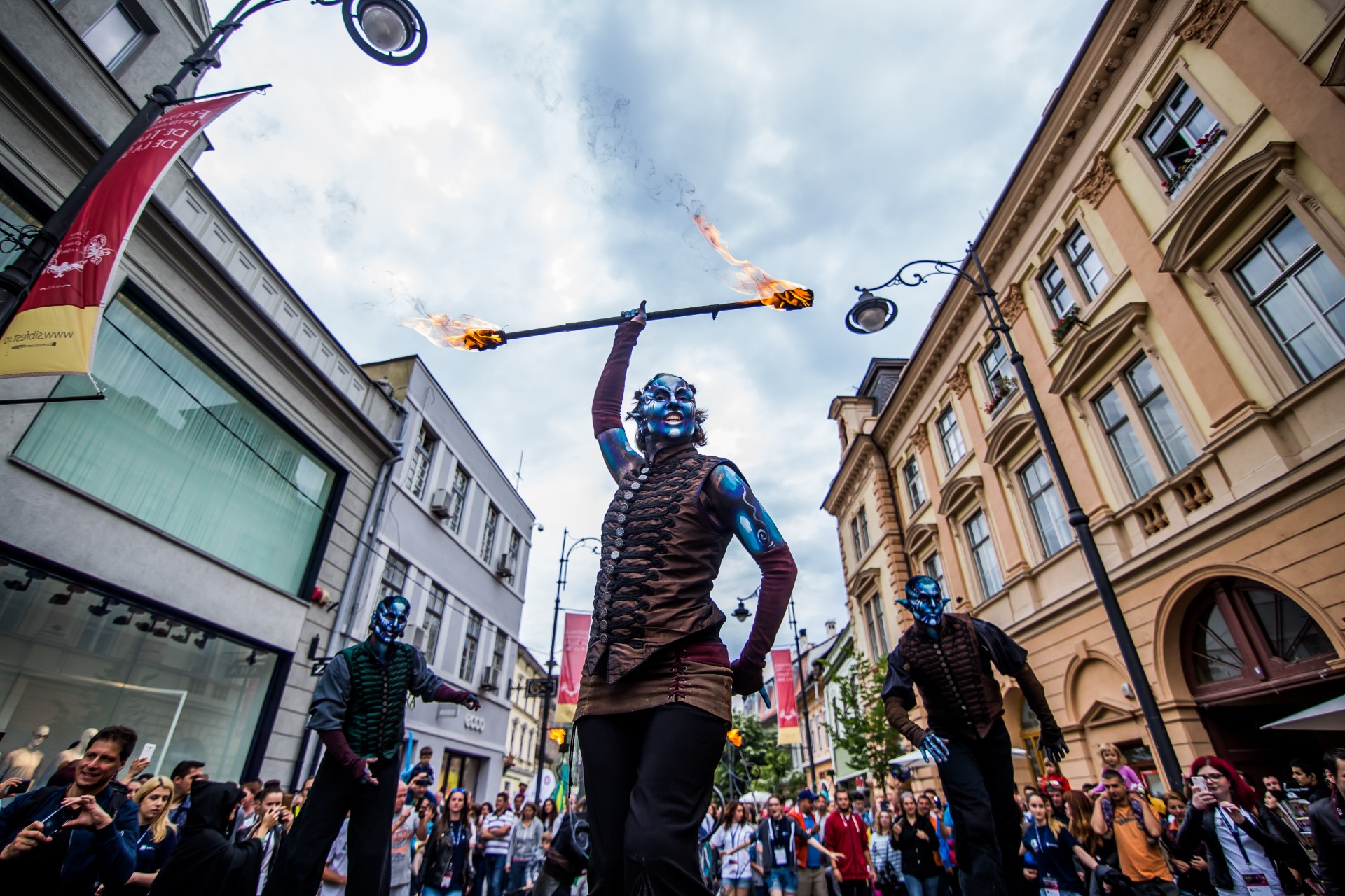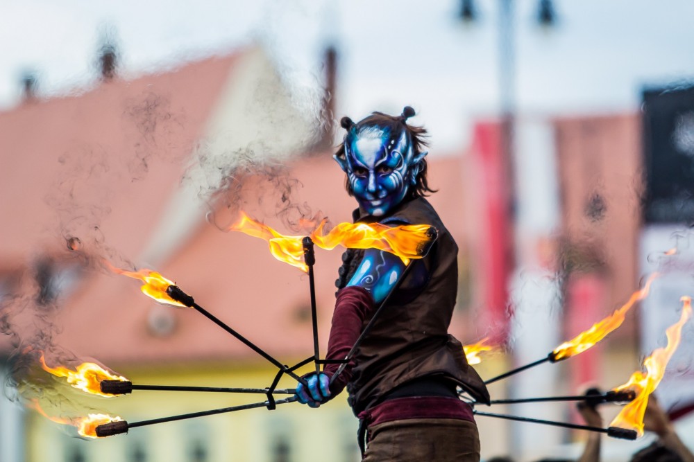 Compania Cie.Fai (Franța), prezintă spectacolul de stradă „Făuritorul de vise”, în cadrul Festivalului Internațional de Teatru de la Sibiu 2016, pe bulevardul Nicolae Bălcescu, vineri, 10 iunie 2016.