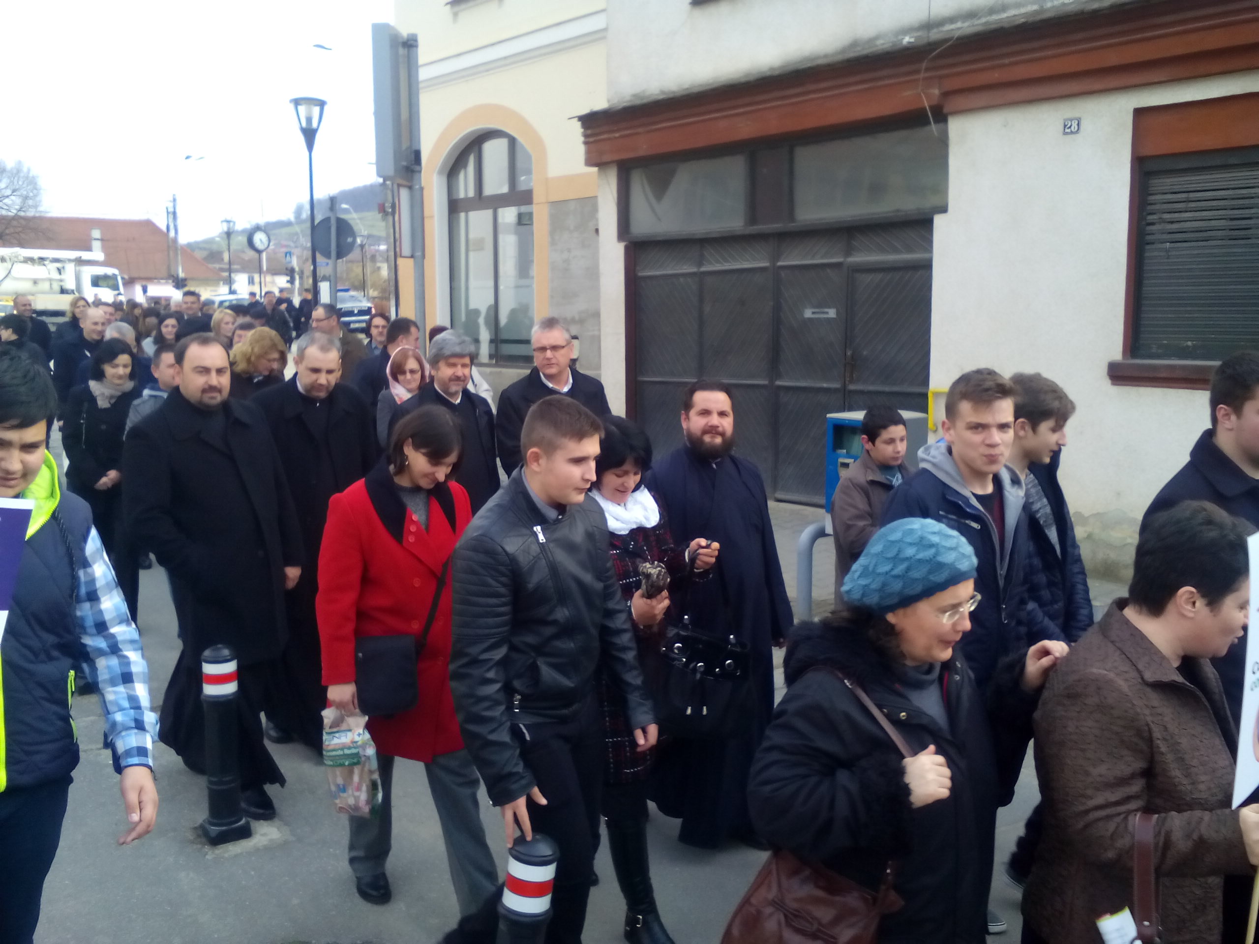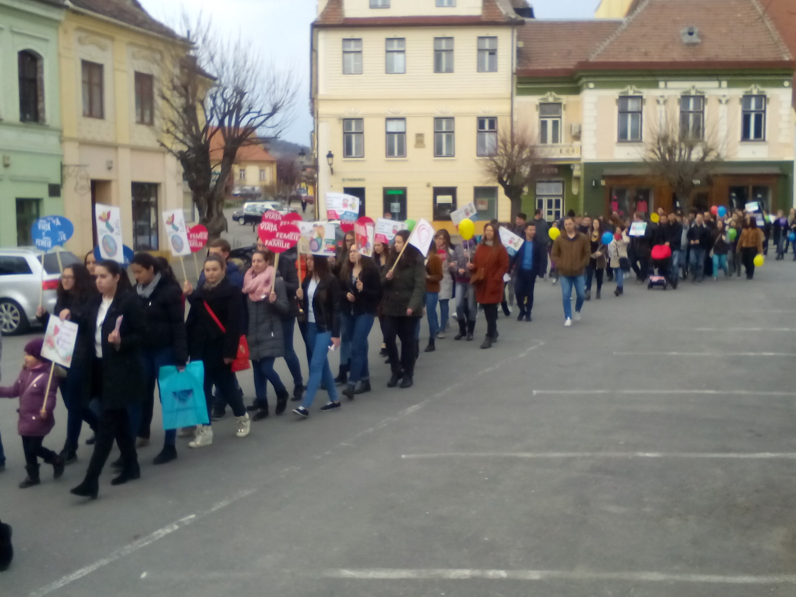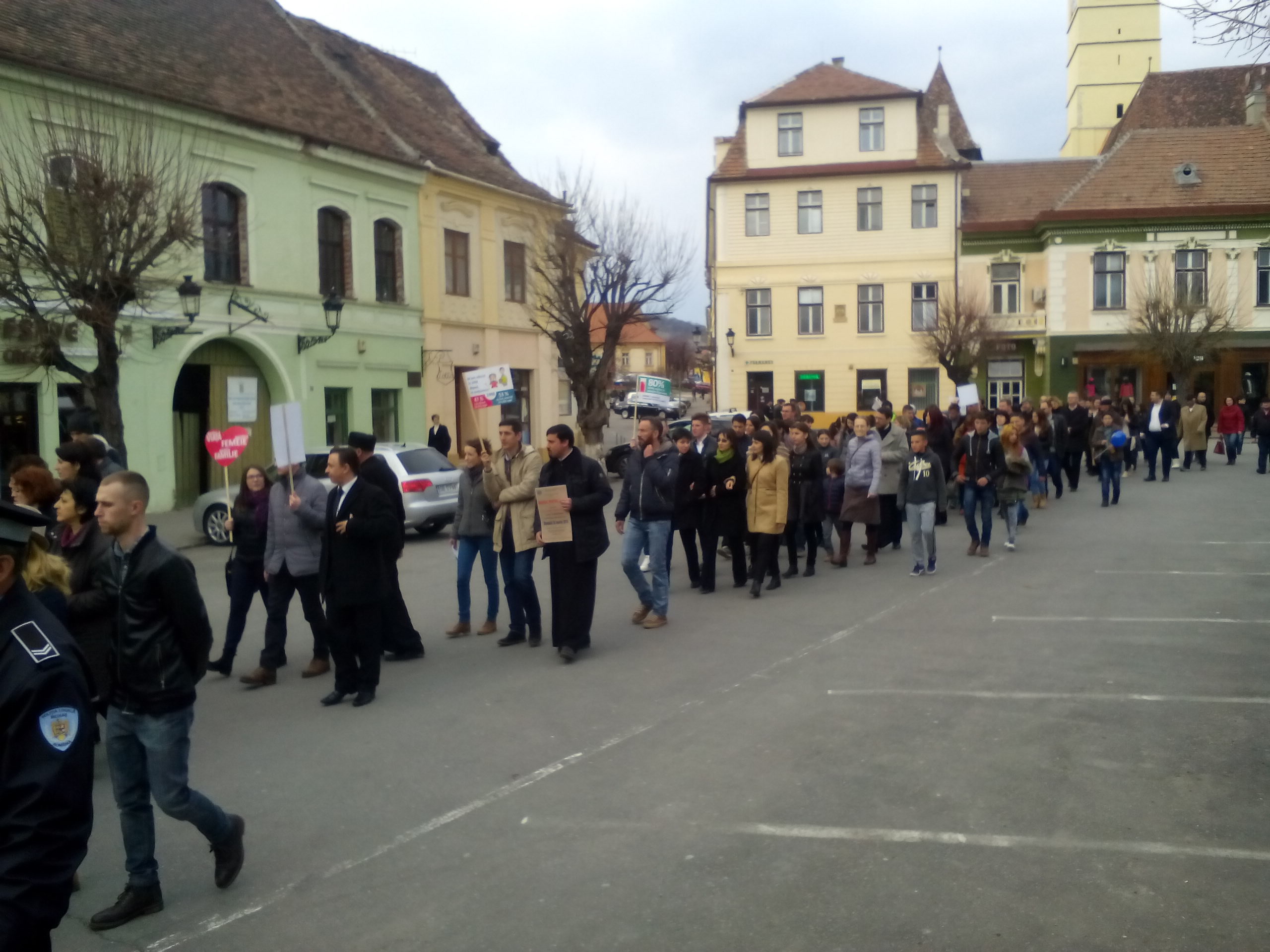 Prezență impresionantă la Marșul pentru Viață din municipiul Mediaș. Protopopiatul Ortodox Român Mediaș a organziat sâmbătă după amiaza, Marșul pentru Viață și Conferința „Iisus Hristos, Viața Noastră!”, susținută de preotul profesor Constantin Necula. Evenimentul a fost dedicat în principal tinerilor cu vârsta între 15 și 35 de ani, însă orice persoană a fost bine primită la marș. Evenimentul a început la ora 16 la Catedrala Ortodoxă Mediaș cu un moment de rugăciune, după care s-a plecat în Marșul pentru Viață pe traseul Piața Andrei Șaguna-strada Nicolae Iorga-Piața Regele Ferdinand I. După marș, la Sala Traube s-a desfășurat Conferința „Iisus Hristos, Viața Noastră!”. „Avem 180 de localități în România care au făcut acest marș. Coaliția pentru Familie a strâns peste 3 milioane de semnături în apărarea familiei. Toată lumea îl vede ca un marș împotriva homosexualității. Nu are nimic de a face cu nimic împotriva cuiva, ci doar pentru a reafirma valorile creștine reale legate de ceea ce înseamnă Hristos și Biserică. Eu am spus că noi mărșăluim și pentru părinții celor care cred că se pot naște singuri, ceea ce e foarte greu. Noi mărșăluim pentru părinții noștri, pentru bunicii noștri, din respect pentru ei, pentru că un popor nu poate să își dezvolte viitorul fără niște părinți responsabili. Am remarcat și la Sibiu, copiii nu au strigat și nu au spus nimic împotriva nimănui, în schimb un slogan m-a topit cu totul, „Dacă ești bărbat, alegi viața”. Lucrul este foarte, foarte bine gândit și eu cred că e important să înțelegem că a-i ajuta pe oameni nu doar să trăiască frumos, ci și să nască frumos, să-și crească copiii frumos, este una dintre datoriile bisericii”, a spus preotul Constantin Necula.