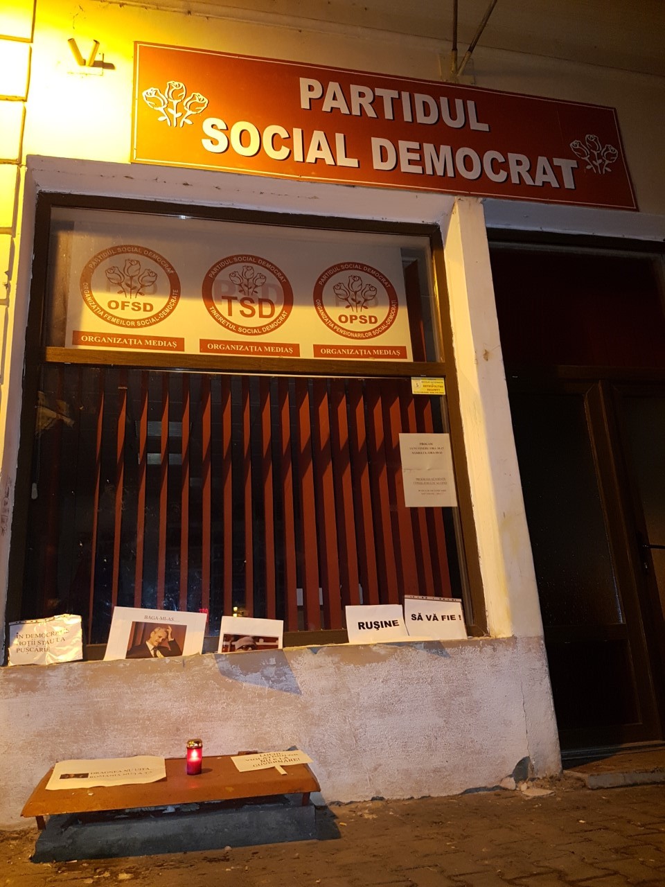 Aproximativ 2.000 de medieșeni au protestat miercuri seara împotriva adoptării proiectului de lege privind graţierea şi modificarea Codurilor Penale. Protestul a început la ora 18 în Piața Corneliu Coposu, iar medieșenii s-au deplasat apoi în centrul istoric al orașului la sediul Partidului Social Democrat. „Să arătăm că ne pasă! Consider că azi-noapte ROMÂNIA a fost violată, iar locul violatorilor NU e la guvernare!”, a fost mesajul de mobilizare pentru medieșeni. La sediul Partidului Social Democrat, medieșenii au aprins candele și au lăsat mai multe afișe și mesaje. „Ieșiți din casă dacă vă pasă”, „PSD ciuma roșie” sau „Păcat de sângele vărsat” au fost doar câteva dintre lozincile protestatarilor medieșeni. Protestul de la Mediaș s-a desfășurat fără niciun fel de incidente.