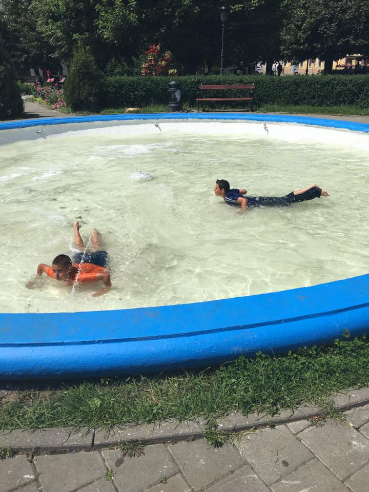 GALERIE FOTO: Au făcut baie în arteziana din centrul Mediașului