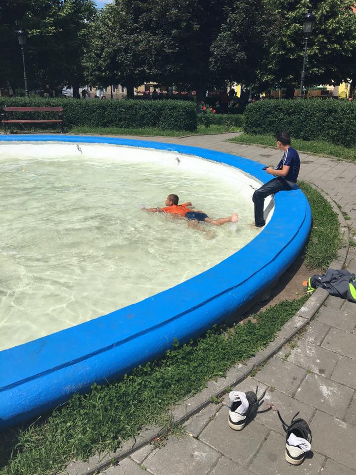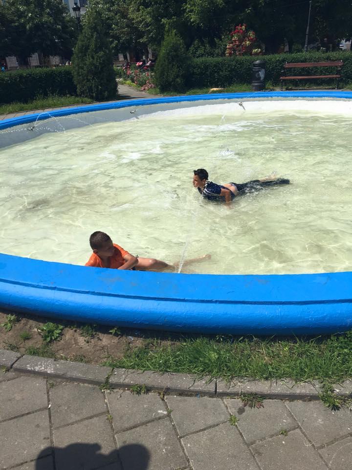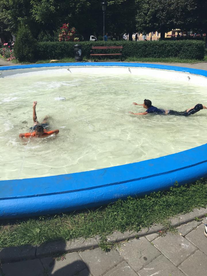 Fântâna arteziană din centrul istoric al Mediașului pare să fi devenit un fel de ștrand pentru unii medieșeni. Doi copii aufost surprinși joi în jurul amiezii făcând baie fără să fie deranjați de nimeni. Nici picior de polițist local medieșean care să îi ia la întrebări pe copii. Aceștia au făcut baie nestingheriți minute bune, după care au ieșit și au plecat dără niciun fel de problemă.