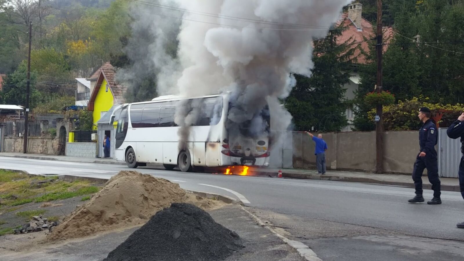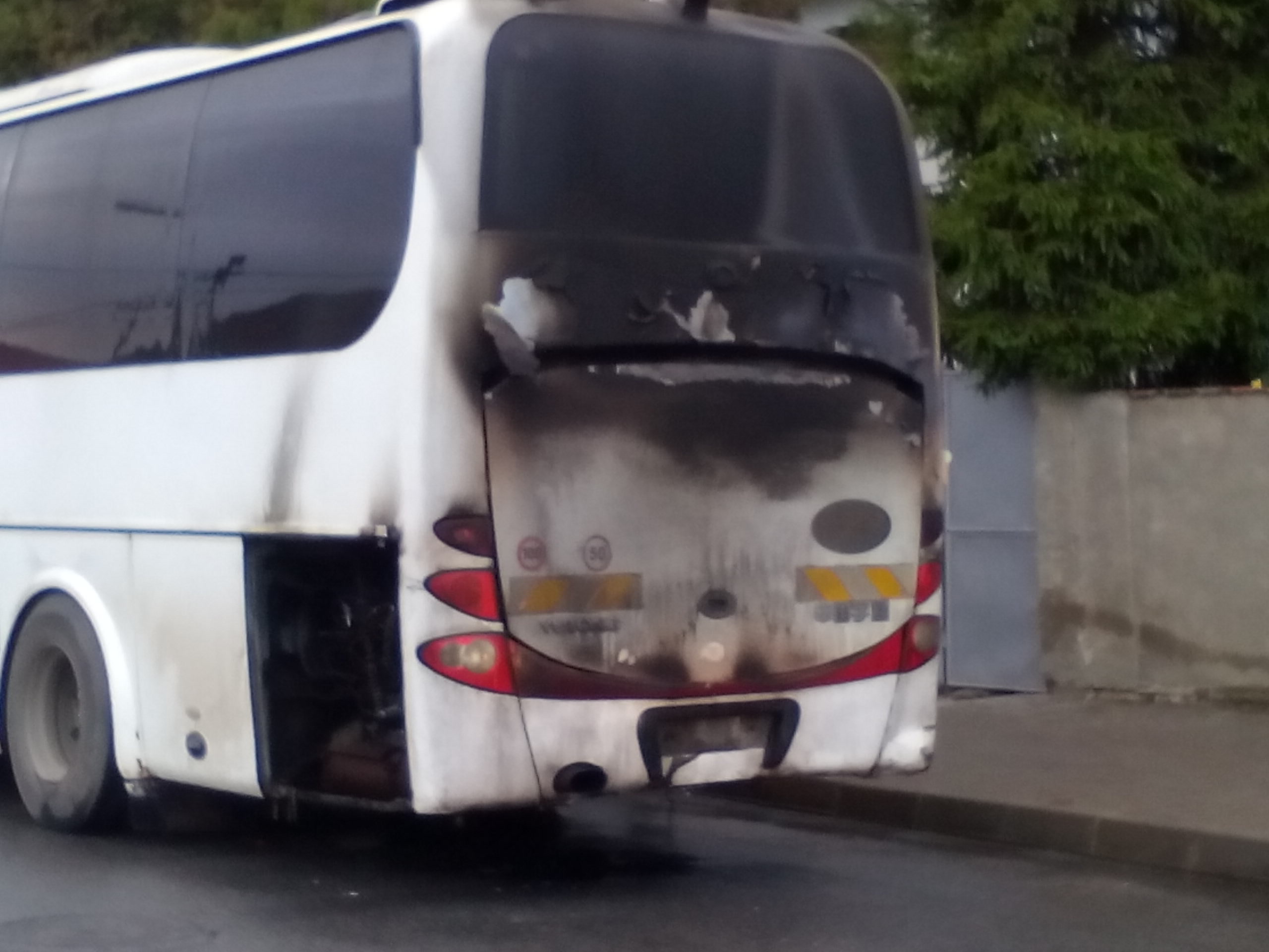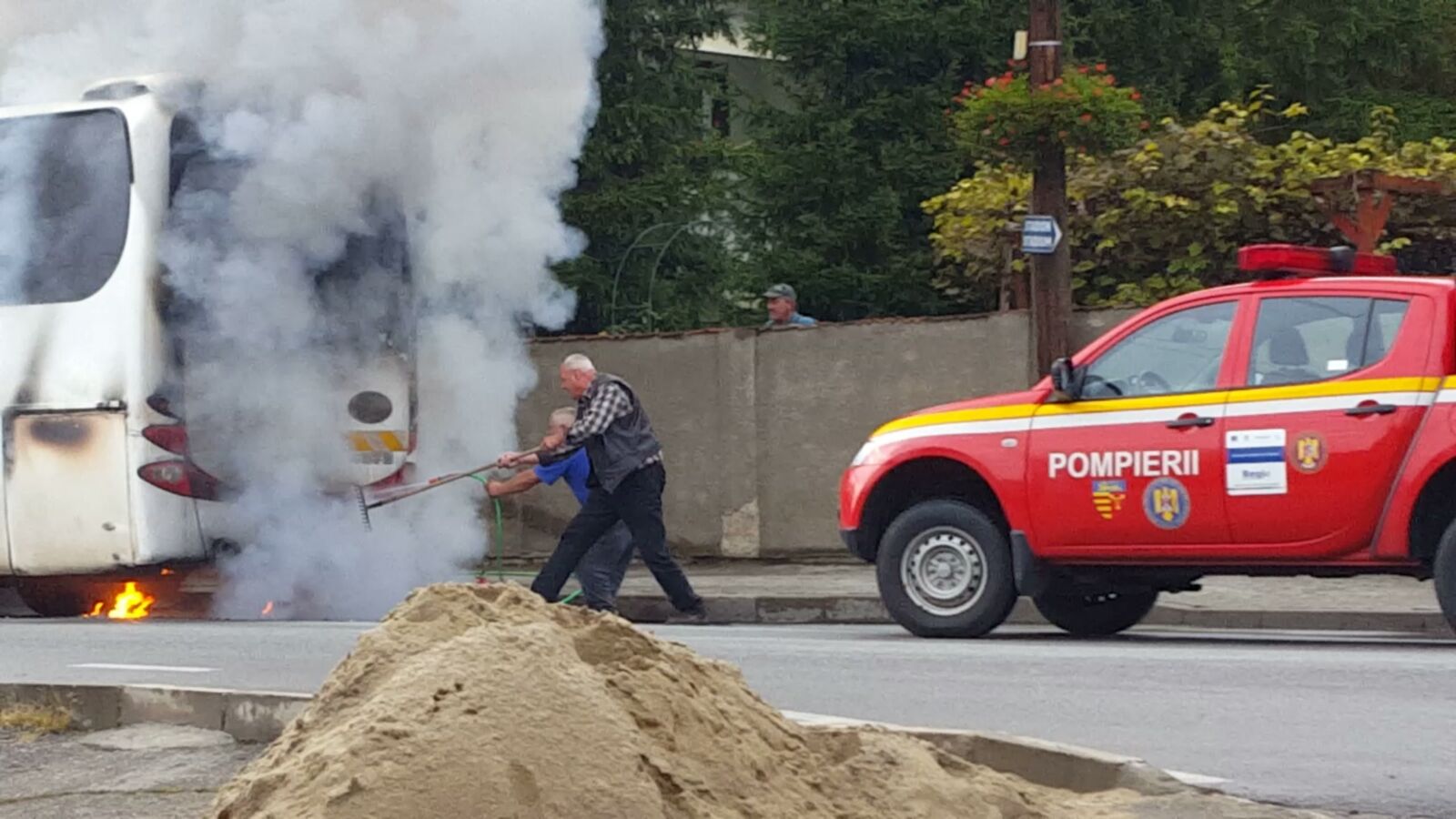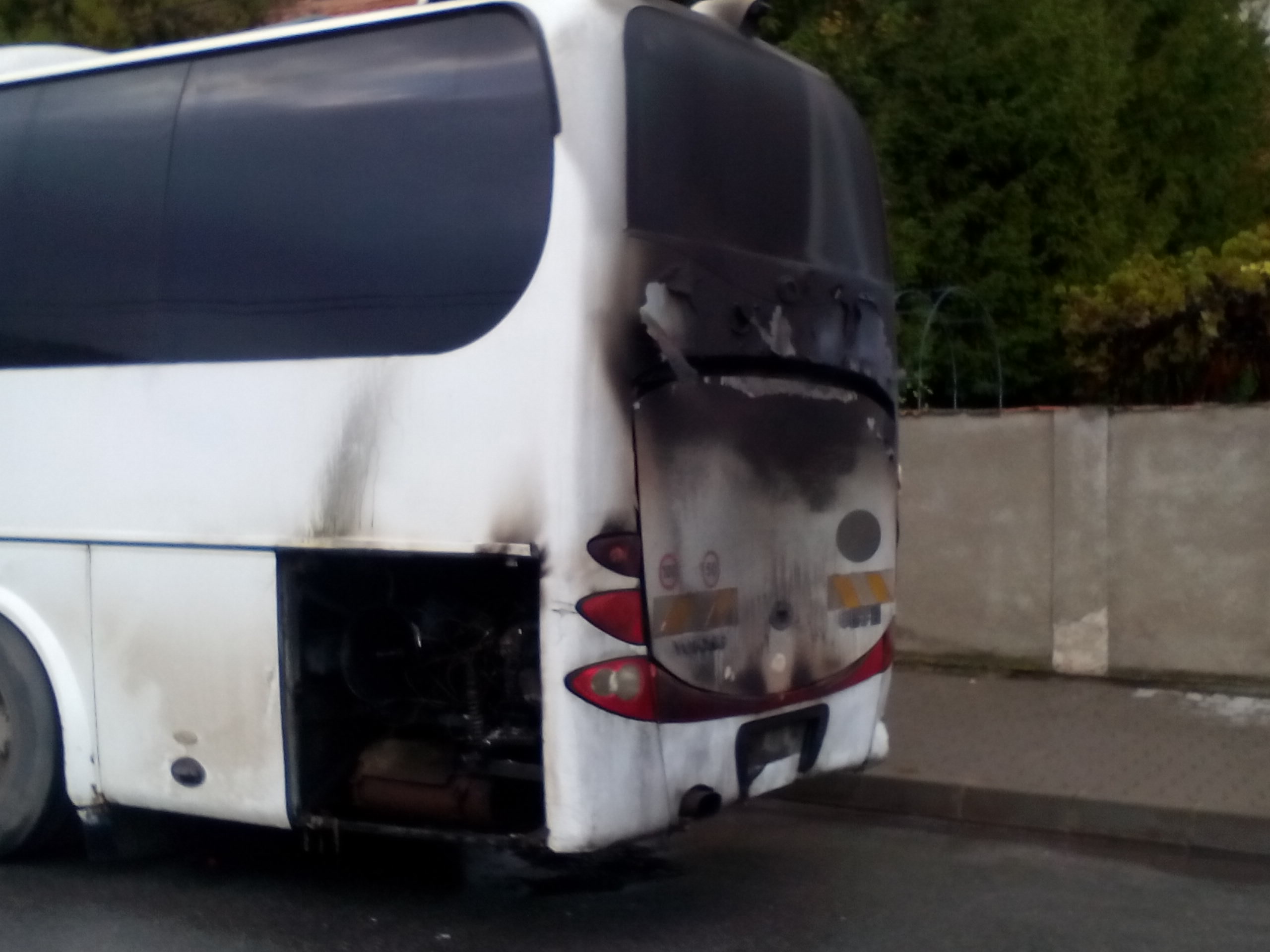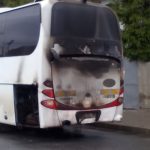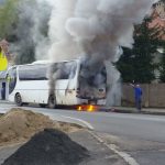 GALERIE FOTO – Autocar în flăcări. Pompierii au intervenit de urgență