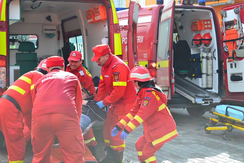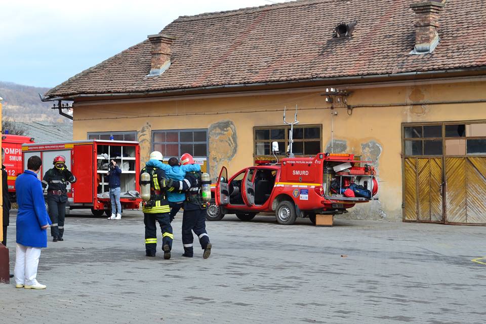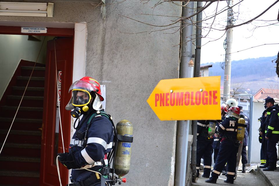 Inspectoratul pentru Situaţii de Urgenţă „Cpt. Dumitru Croitoru” al judeţului Sibiu a organizat, joi, un exerciţiu privind intervenţia în caz de incendiu la Spitalul Municipal Mediaș. Potrivit scenariului exerciţiului, din cauza unui scurtcircuit electric produs la instalația electrică, a izbucnit un incendiu la Secţia de Pneumofiziologie din cadrul Spitalului Municipal Mediaș, cu posibilitate de propagare la întreaga clădire. Incendiul a fost observat târziu de către o infirmieră, care a alertat personalul din conducerea spitalului. Totodată, personalul de pe locul de muncă a încearcat evacuarea rapidă a victimelor, întrucât incendiul se propaga cu repeziciune. Din cauza faptului că spațiile au fost inundate cu fum, nu s-a reușit efectuarea evacuării tuturor pacienților internați. A fost anunțat dispeceratul integrat din cadrul Inspectoratului pentru Situaţii de Urgenţă al judeţului Sibiu, care a pus în aplicare Planul Roșu de Intervenție la nivelul județului Sibiu. Pentru salvarea şi evacuarea victimelor, acordarea primului-ajutor medical şi stingerea incendiului, au fost alertate forţele şi mijloacele din cadrul Șecției de pompieri Mediaș, Detașamentului de pompieri Sibiu, Stației de pompieri Agnita, dar și din cadrul Punctului de Lucru Dumbrăveni.