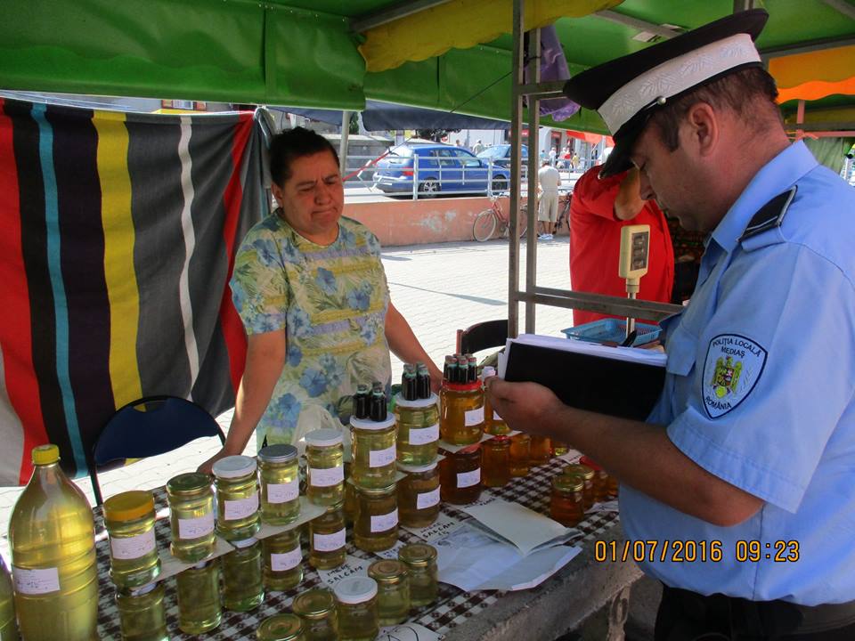 Comercianții din Piața Agroalimentară Mediaș au avut parte vineri dimineața de o „surpriză” din partea Poliției Locale. Mai mulți polițiști locali au luat la verificat producătorii și comercianții din piața centrală a municipiului de pe Târnva Mare, iar surprizele nu au întîrziat să apară. Lipsa documentelor necesare desfășurării activităților de comerț sau acte expirate, lipsa verificărilor metrologice la cântare sau mizeria de lângă mesele comercianților au fost doar câteva dintre neregulile constate. De asemenea, polițiștii locali au dorit să afle dacă mai există cazuri de comercianți care înșeală la cântar. S-a lăsat cu avertismente verbale și scrise, dar și cu amenzi acolo unde situația a impus-o. „Lucrătorii Poliției Locale au intensificat acțiunile de verificare și control în Piața agroalimentară cu scopul de a diminua faptele de natură contravențională. S-au avut în vedere aspectele privind curățenia în jurul meselor de comercializare a produselor agro-alimentare, verificarea actelor privind proveniența mărfii, afișarea prețurilor produselor expuse spre comercializare sau existența Buletinului de verificare metrologică a cântarelor. Totodată s-a avut în vedere depistarea persoanelor care practică metoda înșelăciunii la cântar. În urma acțiunilor au fost aplicate 4 sancțiuni contravenționale în valoare de 2.000 de lei pentru lipsa documentelor pentru desfășurarea comerțului, un avertisment scris pentru lipsa buletinului de verificare metrologică a cântarului și 6 avertismente verbale pentru mizeria existentă în jurul meselor unde își desfășoară activitatea. Comercianții care încalcă prevederile legale în vigoare riscă sancțiuni contravenționale de până la 5.000 de lei”, a declarat Ilarie Sideriaș, șeful Poliției Locale Mediaș.