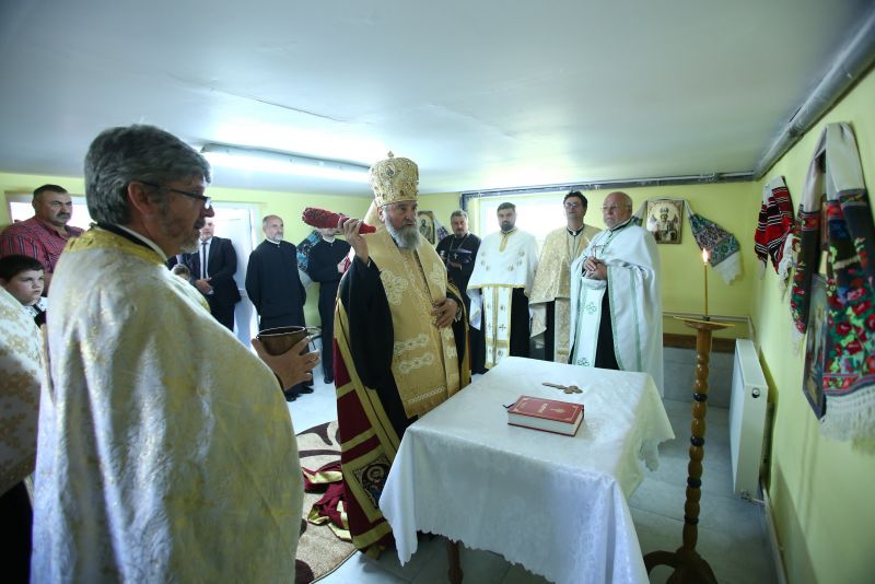 La finalul Sfintei Liturghii IPS Mitropolit Laurențiu a tâlcuit Evanghelia citită în Duminica a 6-a după Rusalii, a vindecării orbului din naștere. „Mântuitorul a făcut tină și i-a uns ochii orbului. A făcut o intervenție asemenea celei pe care Dumnezeu a făcut-o la crearea omului, pentru că pe celelalte făpturi le-a creat Dumnezeu prin cuvânt, însă pe om l-a făcut cu mâna Sa, după Chipul Său, oferindu-i șansa să ajungă la Asemănarea Sa. Iată și acum Fiul lui Dumnezeu ne ajută nouă, cei ce în Biserica Lui ne folosim de anumite materii care poartă harul pentru a ne putea împărtăși din El. Tot așa El a folosit pămîntul, materia din care a fost zidit omul pentru a vindeca această făptură aflată în suferință”, a subliniat ierarhul. Părintele Ovidiu Găban i-a mulțumit ierarhului la final pentru binecuvântarea adusă peste comunitatea din Mediaș.