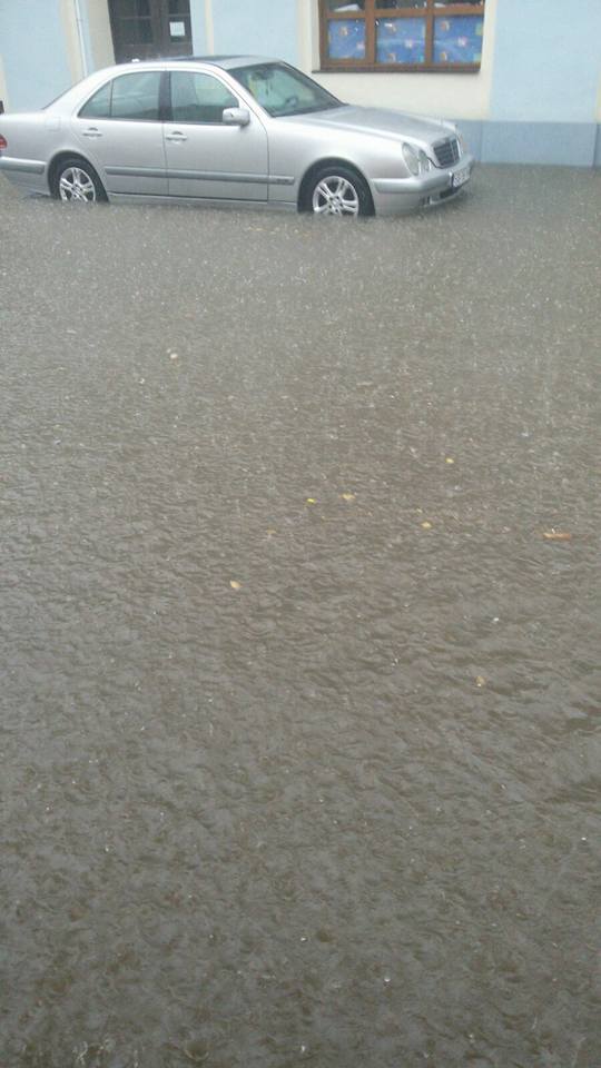 UPDATE: Drumul Național 14 A este blocat de ploaie. Porivit Inspectoratului pentru Situații de Urgență Sibiu, un autoturism este blocat pe drum, la ieșirea din Blăjel sppre Botorca. Spre Blăjel se deplasează un echipaj din cadrul Detașamentului de Pompieri Mediaș.