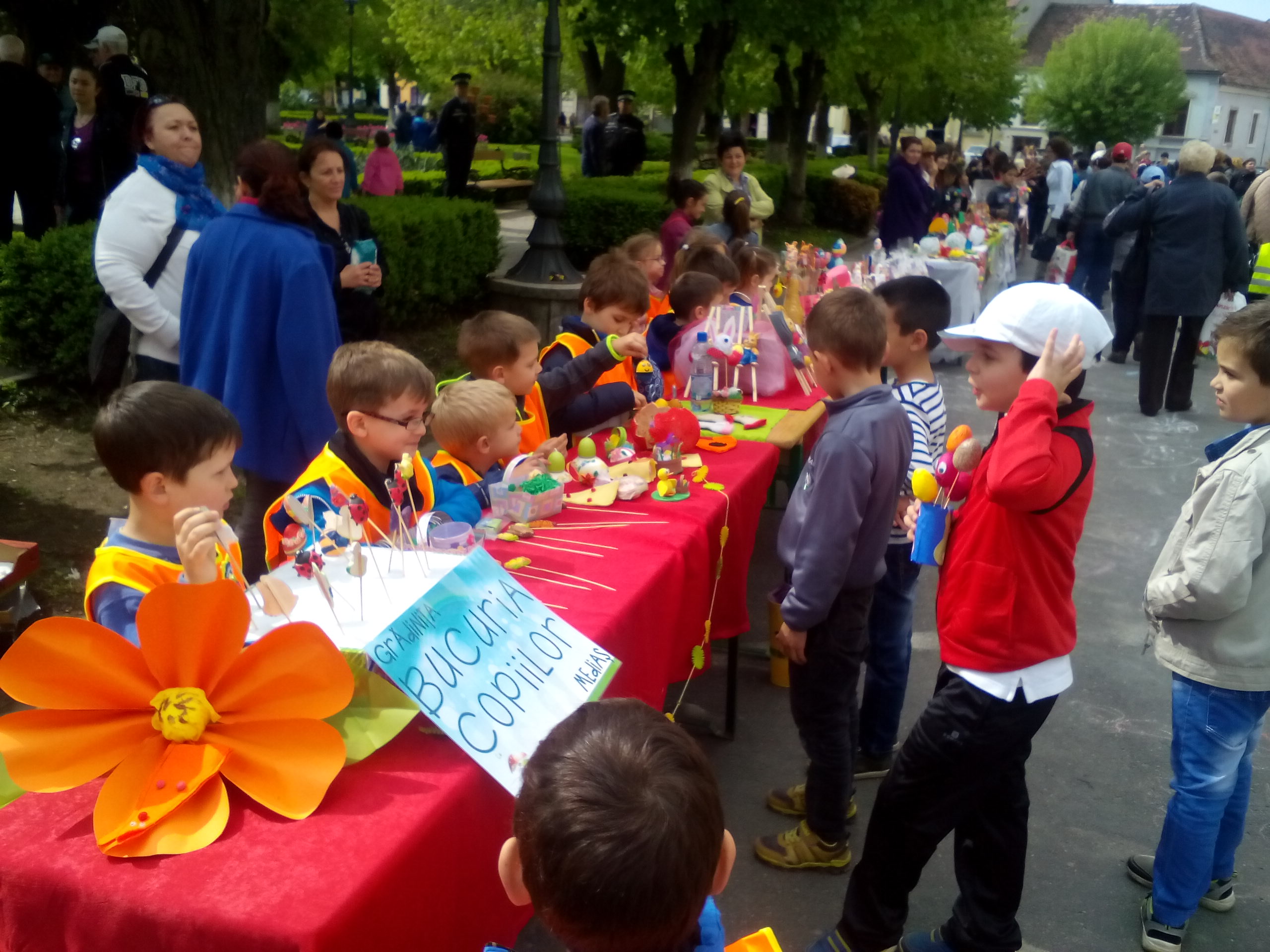 Centrul istoric al Mediașului a fost asaltat joi dimineața timp de două ore, de sute de copii de la grădinițele și școlile generale din oraș, care au participat la un Bazar de Paști. Fiecare unitate de învățământ s-a pregătit cum a știut mai bine, micuții elevi confecționând diferit obiecte cu tematică de sezon. Au încercat apoi să le vândă medieșenilor care au trecut la ora repectivă prin zona centrală a orașului. „În perioada premergătoare marii Sărbători a învierii Domnului, Direcţia Municipală pentru Cultură din Mediaş a organziat joi între orele 10-12, în Piaţa Regele Ferdinand I, un târg cu produse specifice Sărbătorii Pascale. Au fost expuse spre vânzare obiecte realizate de elevi, în timpul bazarului funcționând și ateliere în cadrul cărora elevii și-au demonstrat îndemânarea în confecţionarea de astfel de obiecte cu tematică Pascală. Cei mai talentaţi elevi au fost premiaţi în cadrul concursurilor care s-au desfăşurat pe tot parcursul evenimentului. Diverse obiecte decorative au fost pregătite pentru medieşeni, într-o acţiune la care au participat peste 300 de elevi de la mai multe şcoli generale şi grădiniţe precum şi reprezentanţi ai unor ONG-uri din oraș”, au precizat organizatorii.