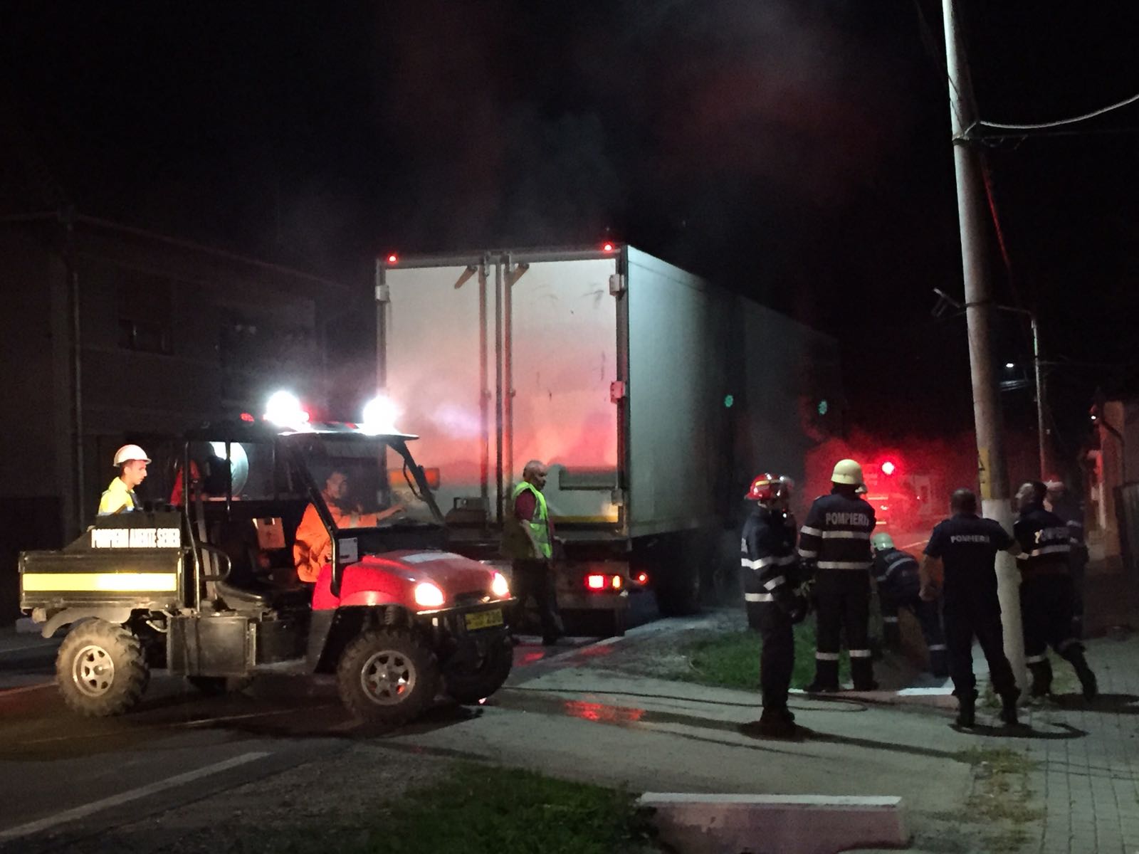Pompierii Secției Mediaș și Serviciul Voluntar pentru Situații de Urgență Axente Sever au intervenit duminică dimineața în jurul orei 4 în localitatea Axente Sever, unde un TIR a luat foc. Pompieriis-au deplasat cu mai multe autospeciale pentru stingerea incendiilor, reușind izolarea și lichidarea incendiului rapid. Focul s-a manifestat pe puntea mijlocie a remorcii, pe partea dreptă, la un cauciuc exterior și la pernele și instalația de aer. Au ars un cauciuc, o pernă de aer de pe partea dreptă a remorcii pe o suprafață de 3 metri pătrați. Din fericire, marfa din TIR nu a fost afectată. Pompierii încearcă acum să afle cauza producerii incendiului.