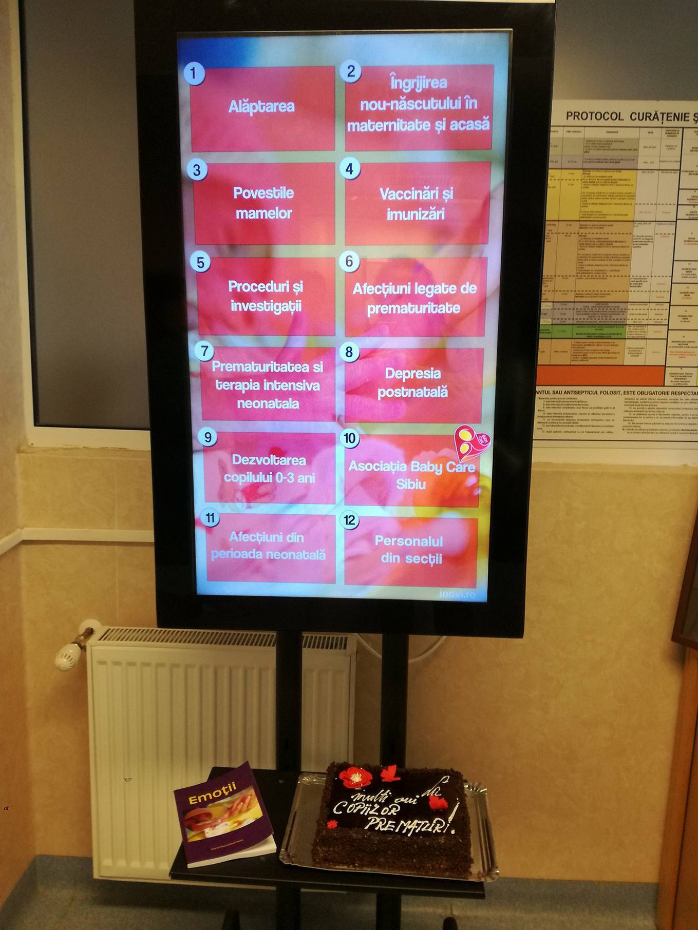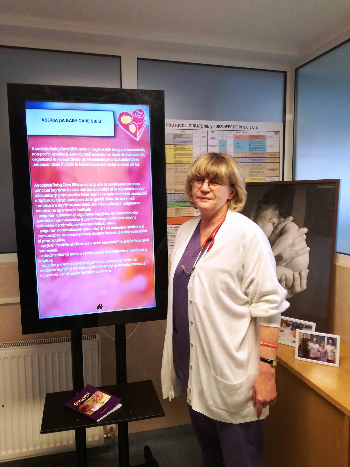 În sfârșit, ultimul eveniment l-a constituit lansarea proiectului “Tolba cu altfel de povești. Poveștile terapiei intensive neonatale“, proiect realizat prin intermediului unei burse de 3.500 euro câștigate la concursul intern de proiecte „Adoptă un proiect” organizat de ING Sibiu. Lansarea acestui proiect a avut loc pe 17 noiembrie în cadrul maternității Spitalului Clinic Județean Sibiu, în terapia intensivă neonatală de la ora 11. „Mulțumim doamnei Ruxandra Călinoiu cea care a îmbățișat ideea acestui proiect și l-a sprijinit în cadrul competiției interne de proiecte dar și tuturor angajaților ING Bank România care l-au votat făcând astfel posibilă punerea lui în aplicare. Este un proiect inedit în maternitățile din România la a cărui punere în aplicare au dat o mână serioasă de ajutor angajații INOVI SMART TECHNOLOGIES Sibiu. Prima parte a proiectului se adresează mamelor din terapia intensivă neonatală. O serie de mesaje pozitive din partea altor mame și fotografii ale absolvenților terapiei intensive neonatale sunt proiectate pe holul terapiei intensive neonatale cu scopul de a încuraja mamele pe durata șederii copiilor lor în terapia intensivă neonatală. A doua parte a proiectului este un centru de informare digitalizat, un ecran touch care cuprinde informații diverse, utile părinților de prematuri: prematuritate și complicațiile sale, alăptare, îngrijirea nou-născutului, proceduri și investigații necesare în cazul nou-născuților bolnavi, imunitate și imunizare dar și despre Asociația Baby Care și evenimentele organizate de asociație. Toate aceste informații au fost elaborate de colectivul de medici ai secției Neonatologie”, a conchis Maria Livia Ognean.