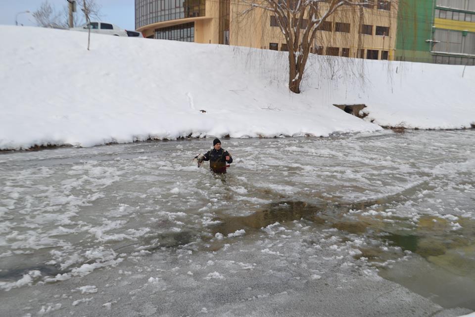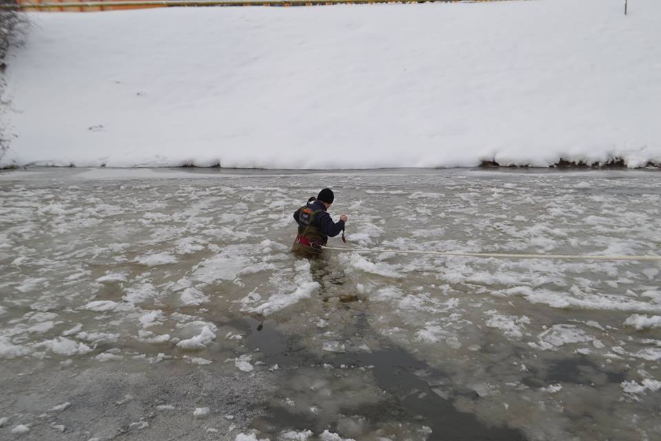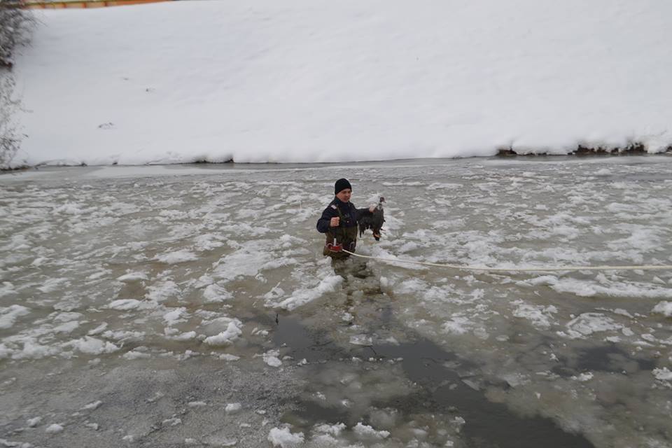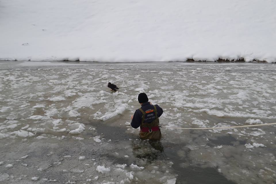 Pompierii au avut o intervenţie inedită. Aceştia au fost chemaţi să salveze două raţe sălbatice blocate în gheaţă pe râul Cibin. Unul dintre pompieri a intrat până la brâu în apa îngheţată şi ajutat de colegii săi a reuşit să scoată cele două păsări.