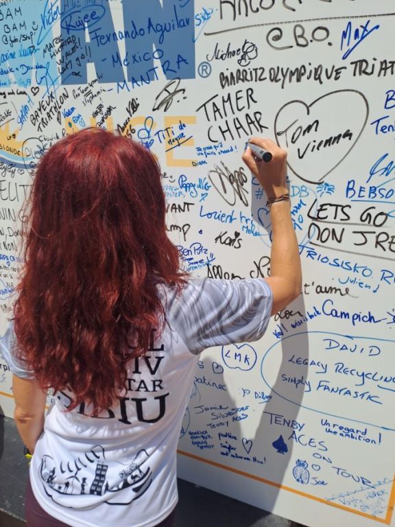 Am vrut să știu cu cât timp înainte de competiție începe pregătirea și în ce constă ea: „În general, fac 7-8 antrenamente pe săptămână (două de înot, 3 de alergare și 2-3 de bicicletă). Vreme de vreo 4 luni. Fac antrenamente specifice, avem un antrenor care ne dă sfaturi, ne mai corectează. Pentru că antrenamentele de la bazin, de pildă, presupun în cea mai mare parte tehnică. Antrenamentele pe care le facem în lacuri sunt foarte bune pentru că le facem într-un mediu foarte asemănător celui din concurs. Și presupun mai mult volum. Adică tehnica deprinsă în bazin o aplicăm în lac. Deși nu e lipsit de tehnică nici antrenamentul în lac. Sunt exerciții care te ajută să conștientizezi mișcările și să le poți face.