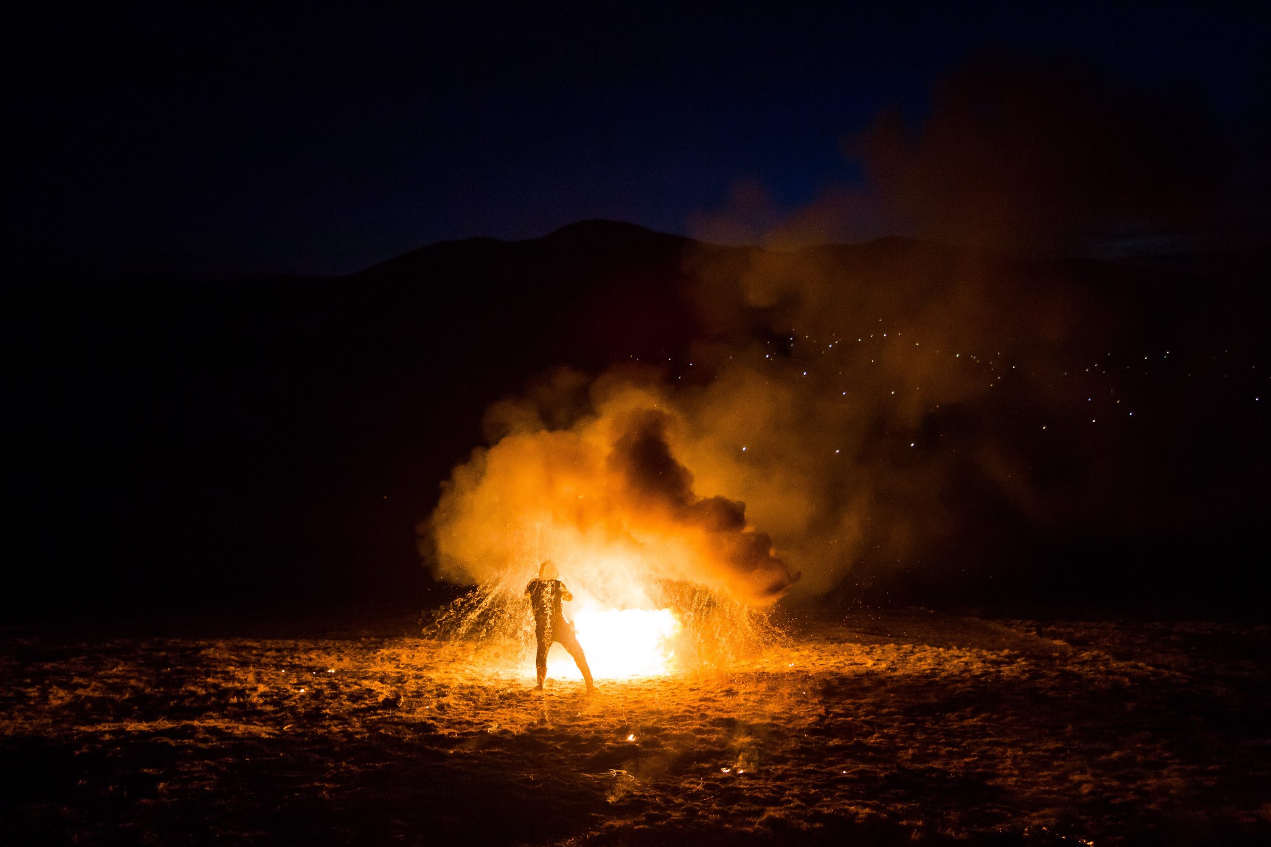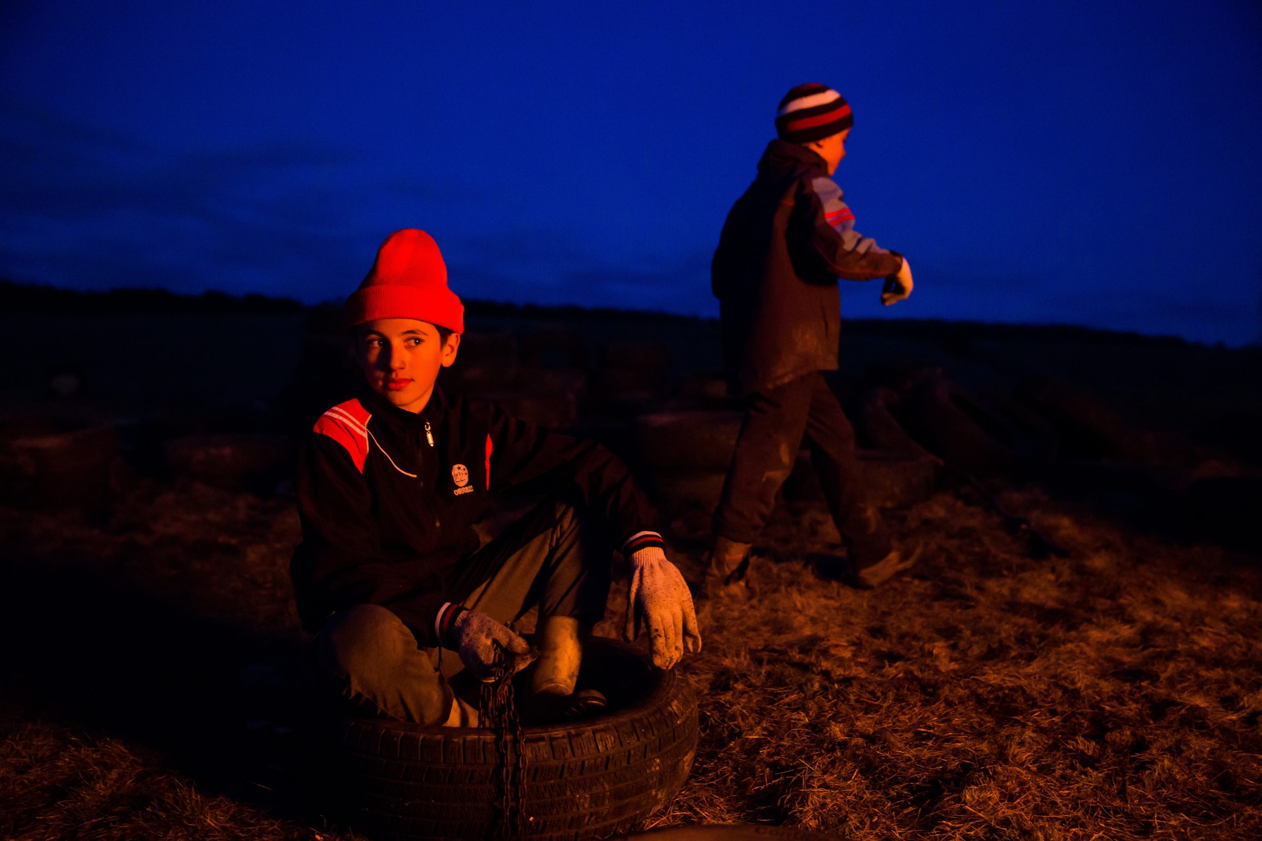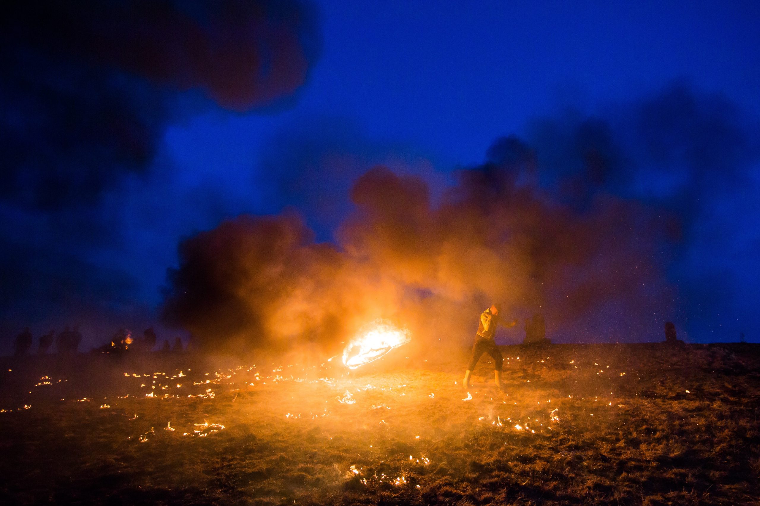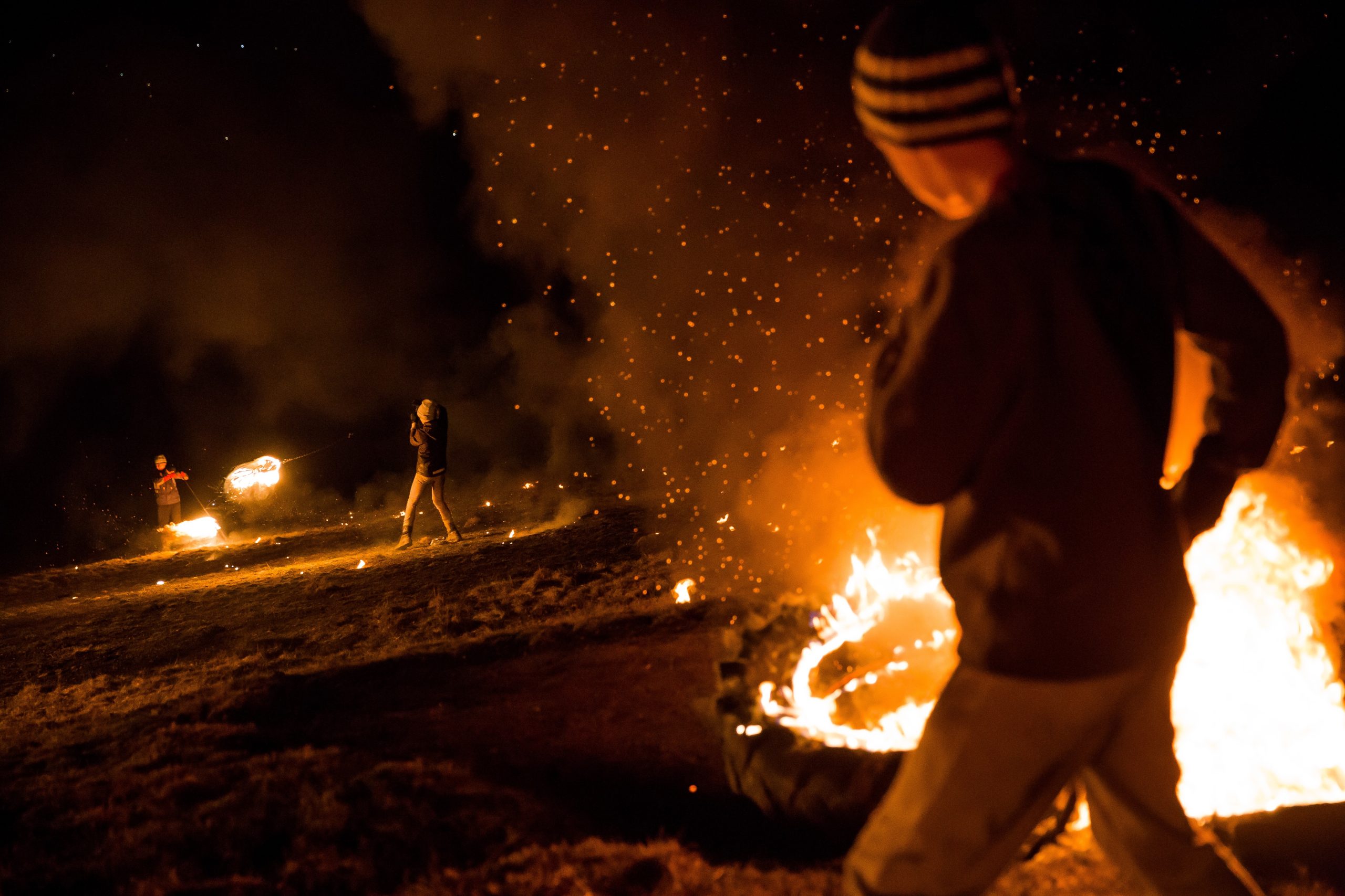 Cauciucurile in flacari sunt rotite in aer, iar tinerii striga numele celor care s-au casatorit de curand, dar si ale celor care s-au despartit recent.