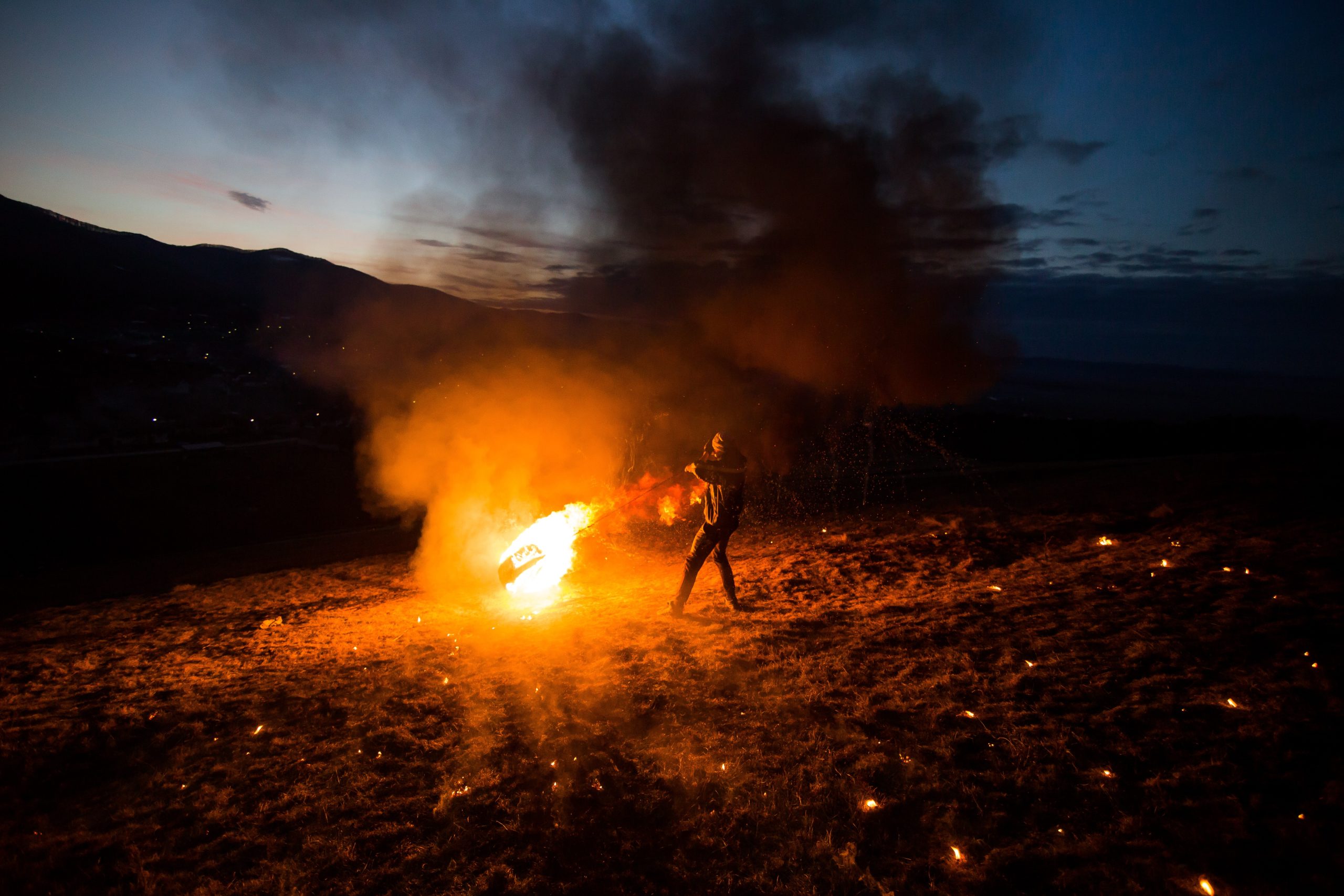In ultima seara de dinaintea inceperii Postului Mare, tinerii se aduna pe un deal si fac un foc urias, folosind, in principal, cauciucuri.