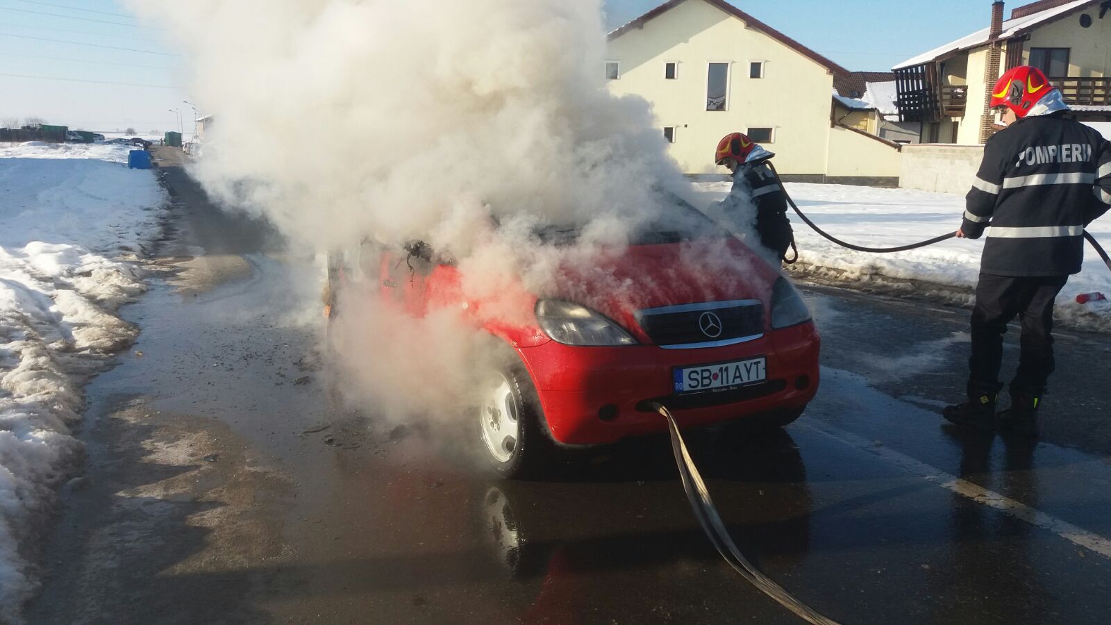 Pompierii au intervenit cu o autospecială cu apă și spumă după ce proprietarul autoturismului a sunat la 112 și a anunțat incendiul. Mașina a ars însă în totalitate deși pompierii au stins focul foarte repede.