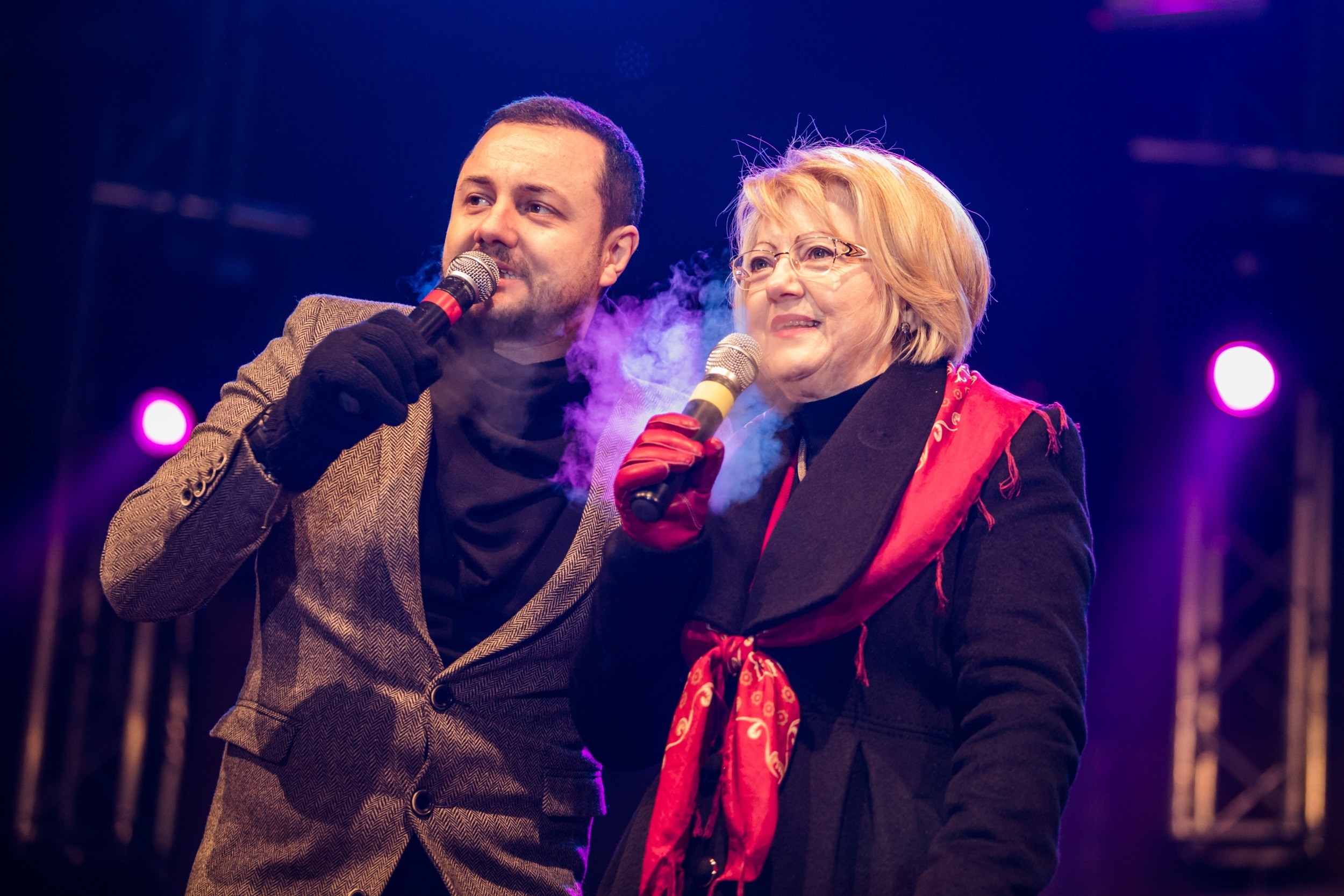 Primăria Sibiu și Casa de Cultură a Municipiului Sibiu i-a invitat pe sibieni în Piața Mare la trecerea dintre ani, unde pe scenă s-a desfășurat un program foarte divers, gândit să fie pe gustul cât mai multor spectatori.