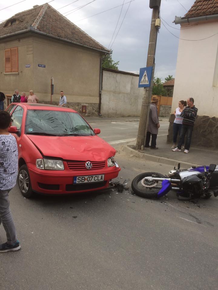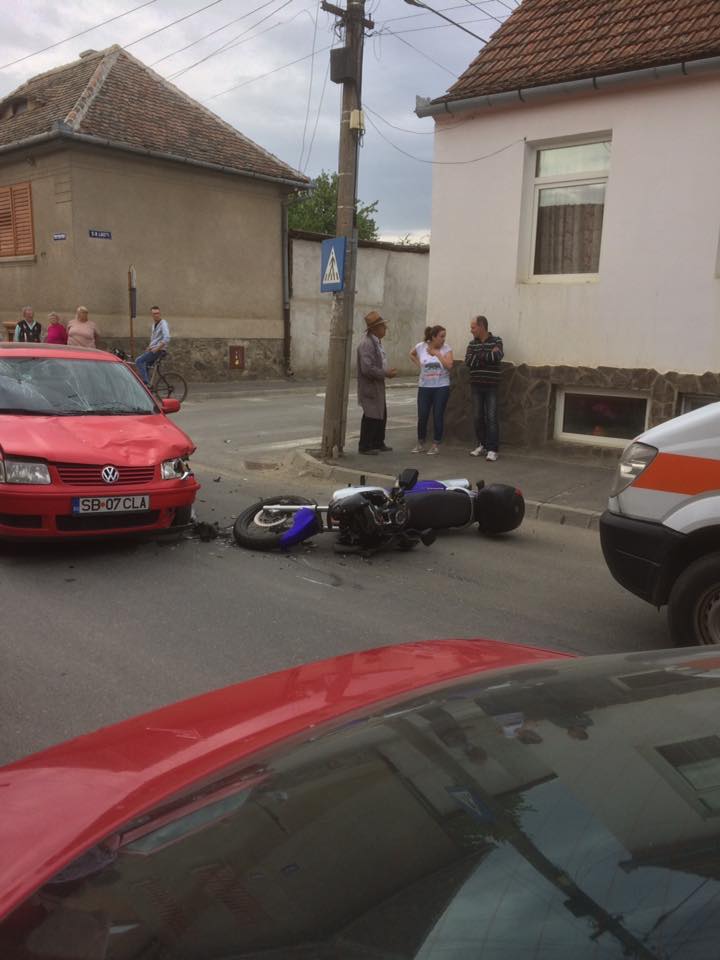 FOTO: Motociclist lovit de o maşină într-o intersecţie