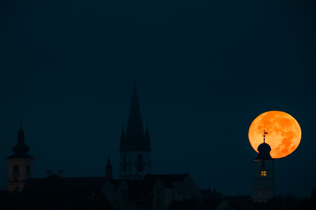 Fotoreporterul Sibiu 100% Ovidiu Matiu a surprins superluna miercuri dimineața la ora 6.40.