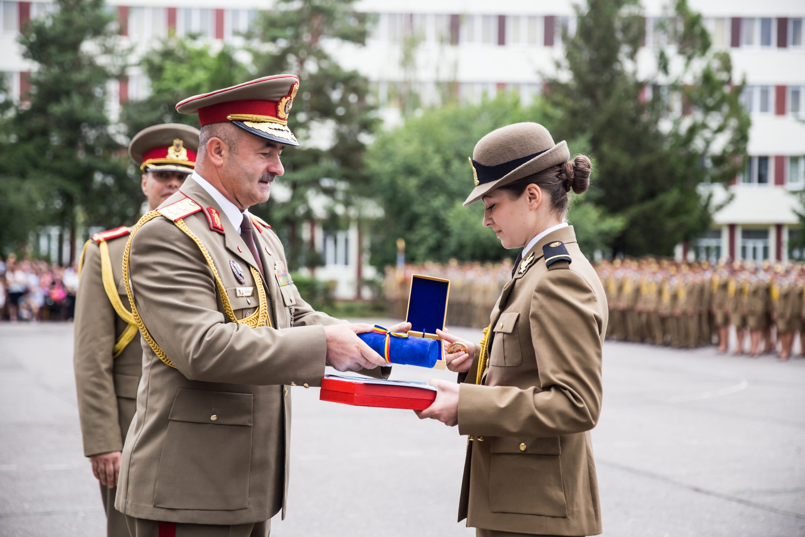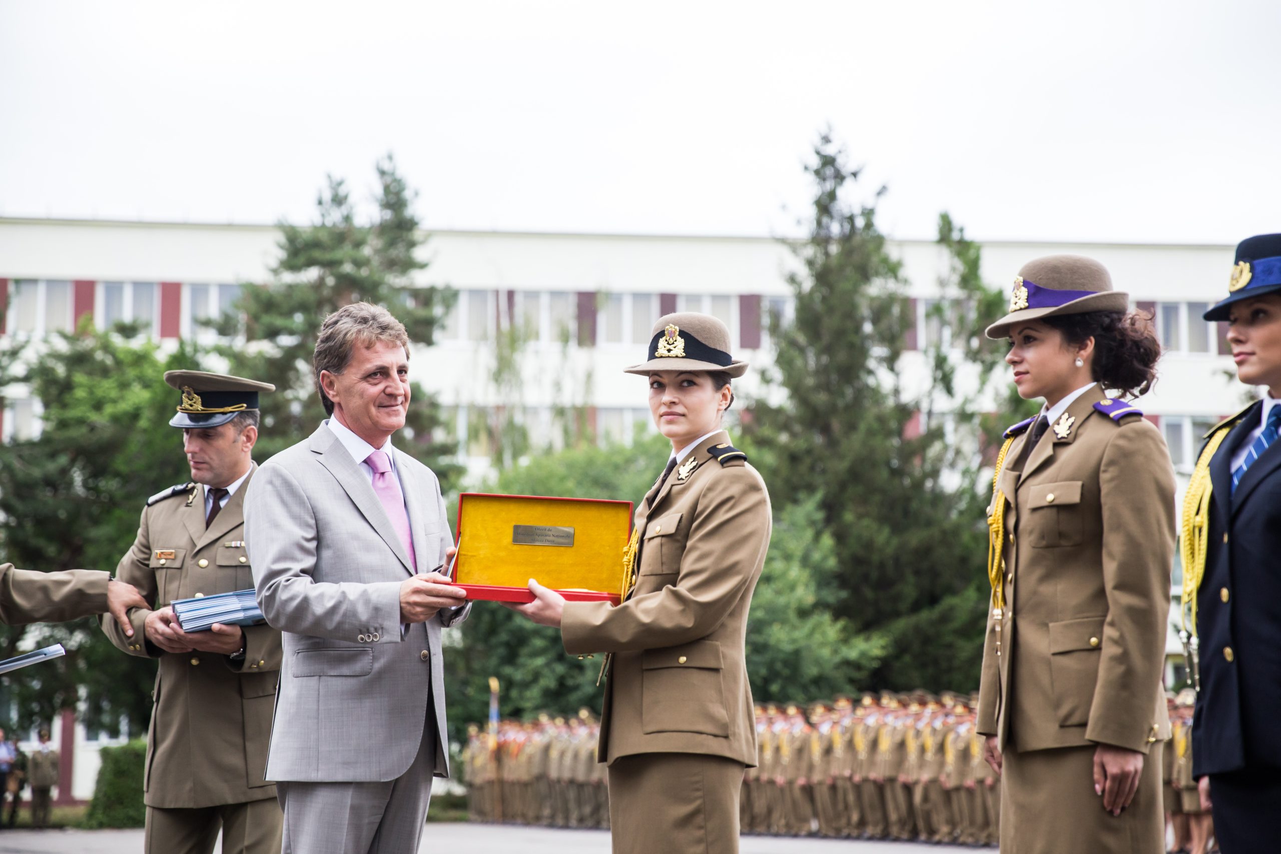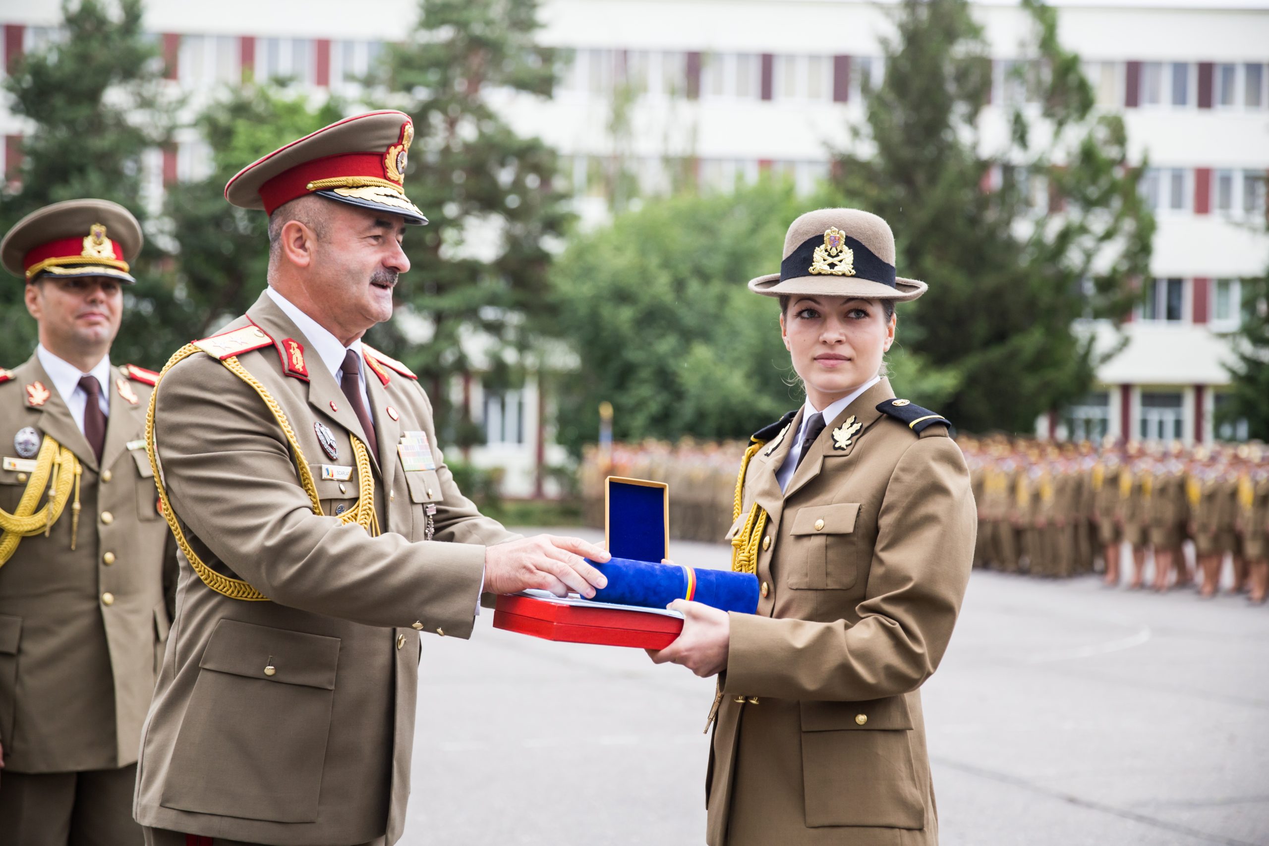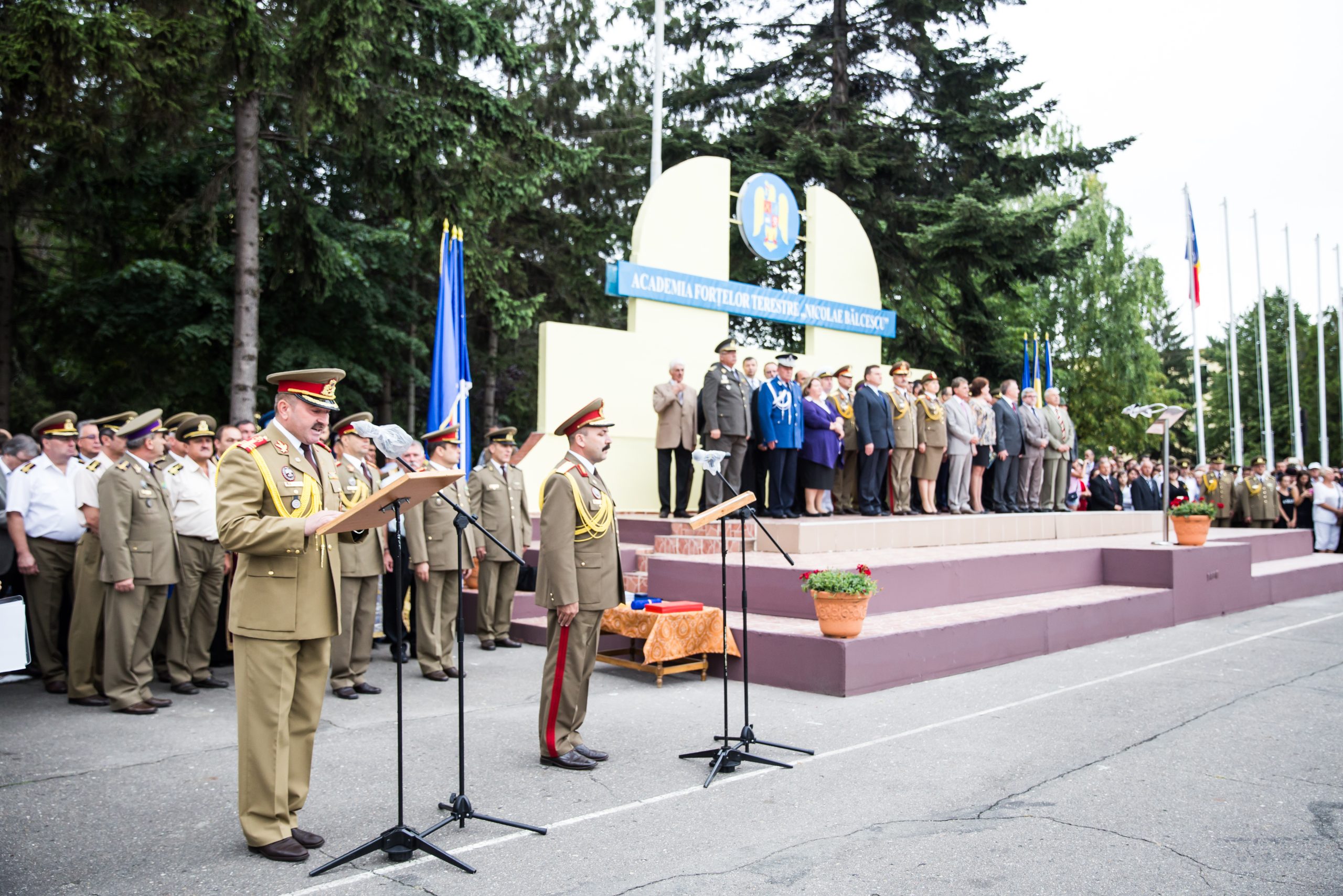 243 de absolvenți ai Academiei Forţelor Terestre „Nicolae Bălcescu” din Sibiu, au primit vineri, 31 iulie, primul grad militar de ofiţer, în cadrul unei ceremonii la care a fost prezent, pe lângă oficialitățile locale și Ministrul Apărării Naţionale, Mircea Duşa. Numele onorific al promoției de absolvenţi 2015 este „Regele Ferdinand – 150”, iar 223 (42 de fete şi 181 băieţi) dintre aceștia au fost pregătiți pentru a încadra funcţii din cadrul Ministerului Apărării Naţionale şi 20 (5 fete şi 15 băieţi) în cadrul Ministerului de Justiţie. Un moment emoționant în cadrul ceremoniei a fost cel în care li s-au recunoscut meritele celor 15 șefi de promoție, studenți care s-au remarcat prin rezultate foarte bune la învățătură în cei 3 ani de învățământ militar. Cea mai mare medie din Academia Forțelor Terestre „Nicolae Bălcescu” , 9,66, a avut-o sublocotenent Nicoleta Mihaiu, Managementul organizației, specializarea militară Informații militare. Tuturor acestor ofițeri merituoși li s-au oferit distincții și diplome. „A fost o onoare pentru mine să mă aflu în fața colegilor mei și să vorbesc în fața părinților și a tuturor celor prezenți aici despre toți acești ani de Academie și despre mândria de a fi astăzi ofițer. Această perioadă a fost una destul de solicitantă, cu destule bucurii și satisfacții, dar și clipe grele. Important este să îți placă ceea ce faci și să pui pasiune, devotament, dăruire și determinare și în cele din urmă să îți vezi visul îndeplinit. Vreau să fiu un bun ofițer al armatei române, să reprezint interesele României oriunde și să servesc cu datorie și responsabilitate și iubire patria română”, a declarat tânăra sublocotenent.