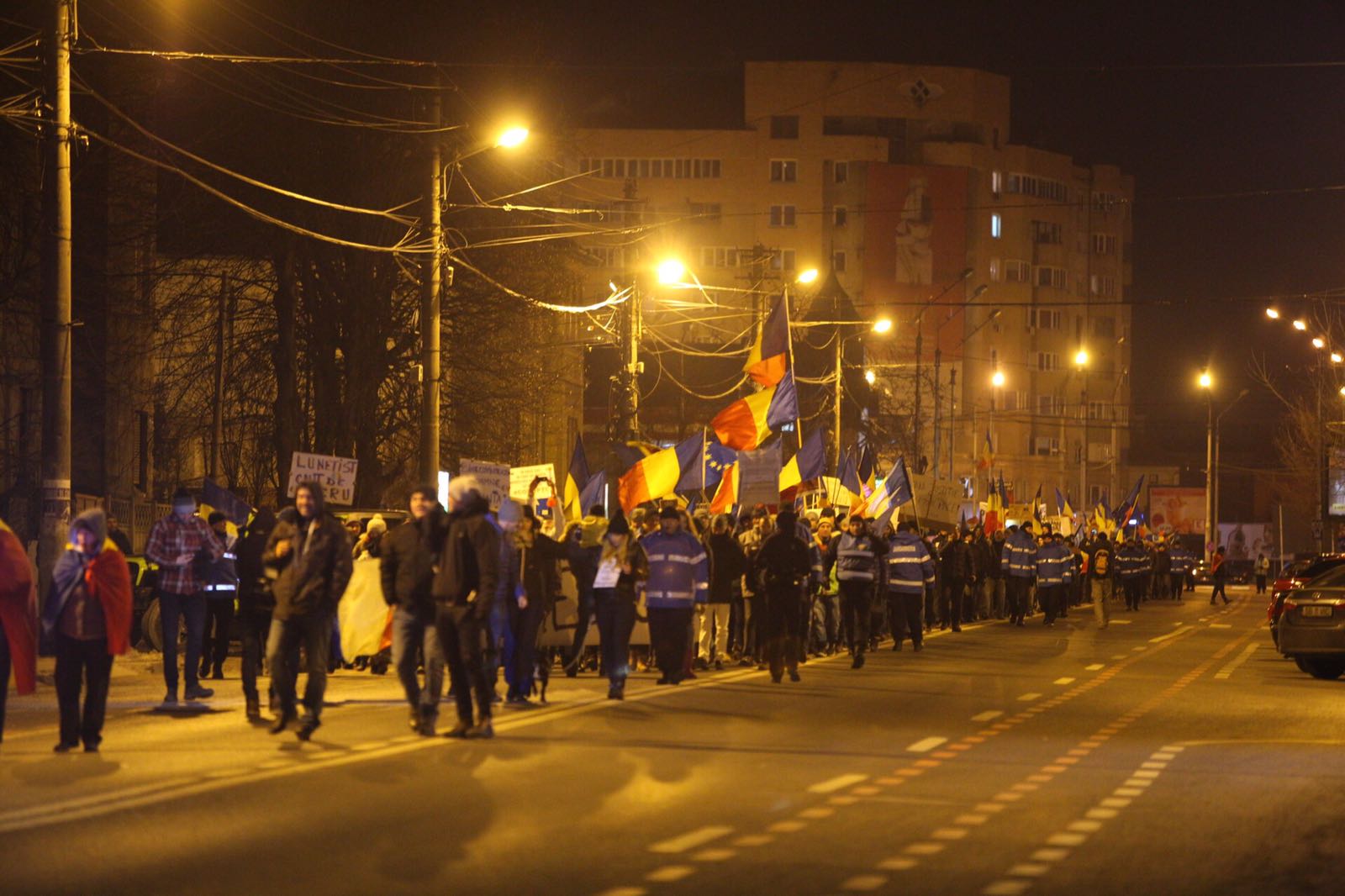 La 19.36 protestatarii au plecat din PIata Mare in mars pe Nicolae Balcescu.