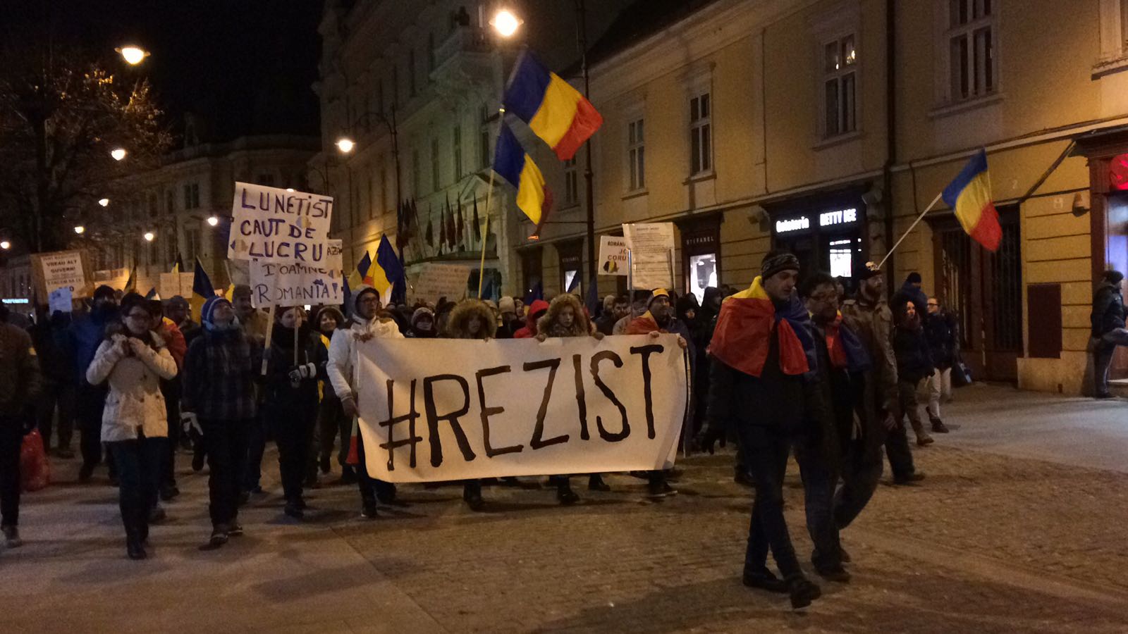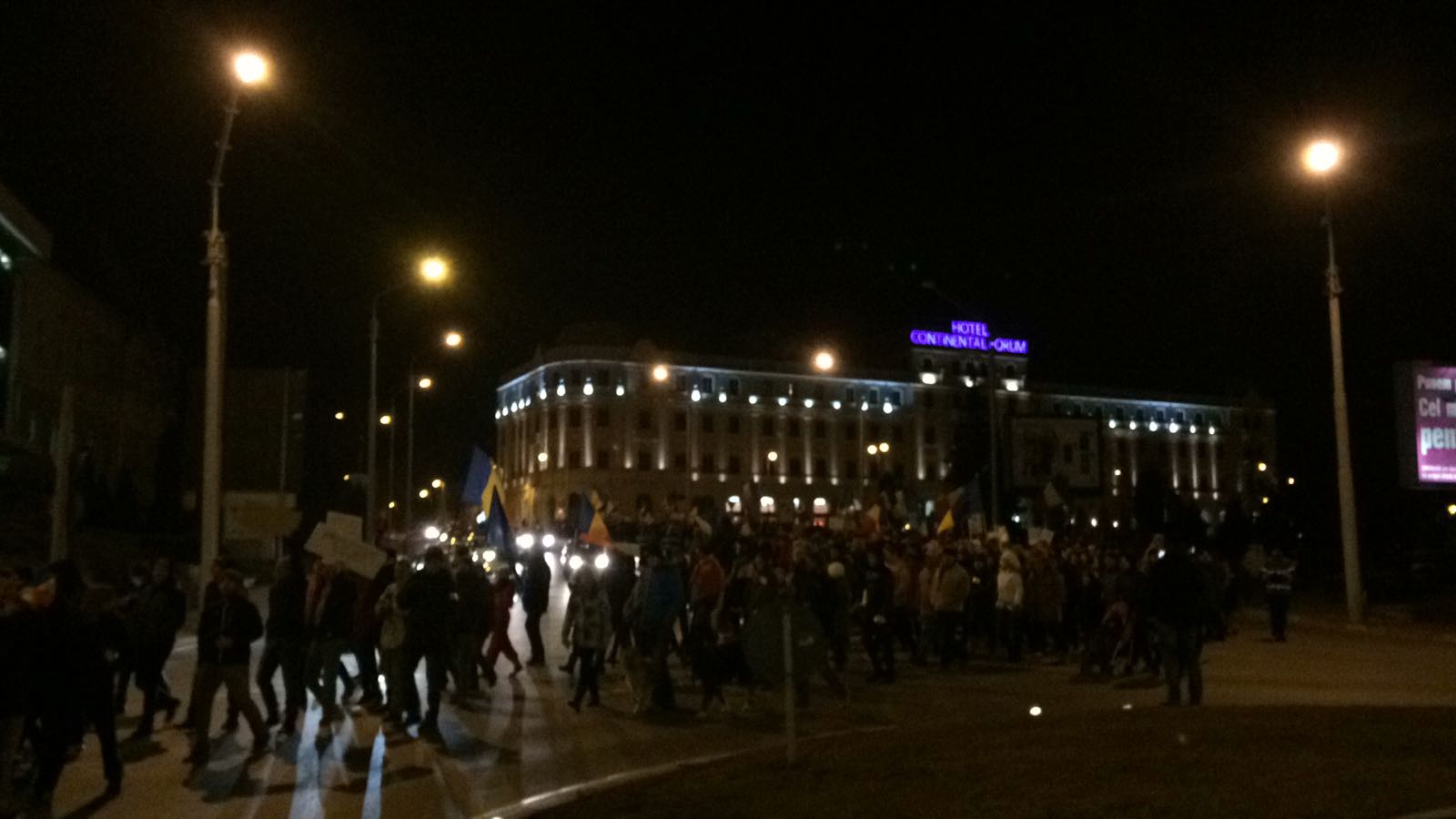 UPDATE 21.30 Coloana de protestatari se indreapta catre Ibis. Numarul celor care marsaluiesc a scazut constant, in parte si din cauza frigului. Acum mai sunt circa 2500 de persoane la protest.