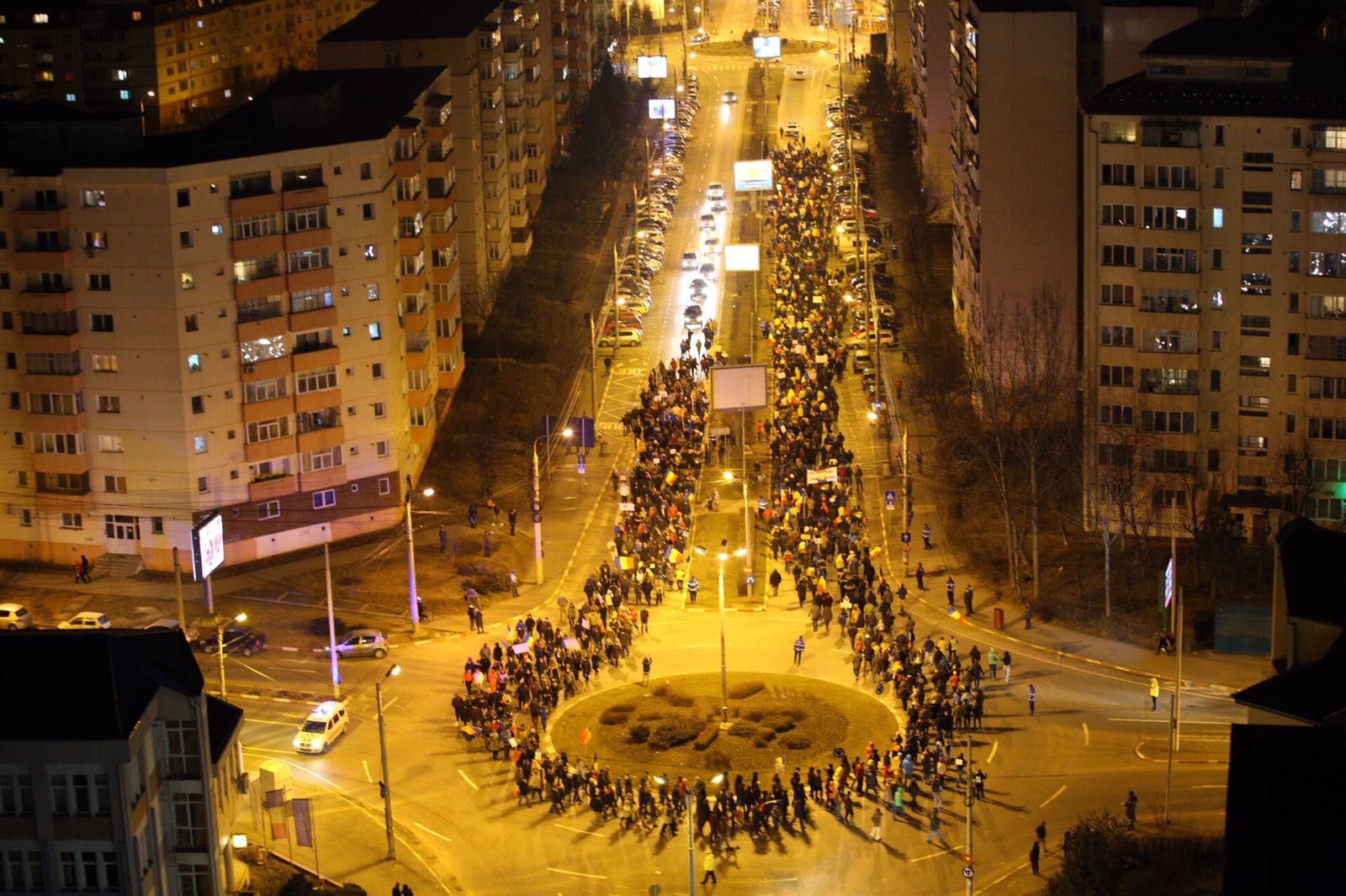 UPDATE 20.10 Coloana de manifestanti a intrat pe Calea Dumbravii. Se scandeaza ”Guvern de hoti si mafioti”, iar numarul protestatarilor depaseste 5.000.