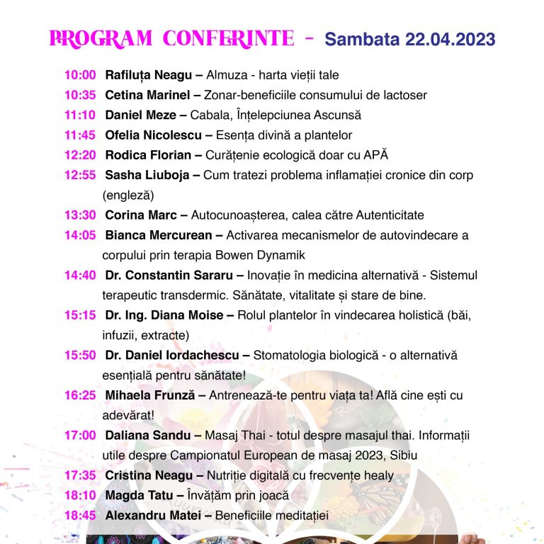 Sibienii vor descoperi și experimenta secretele unei vieți sănătoase și echilibrate prin nutriție, medicină holistică, terapii complementare, cristale și multe altele.