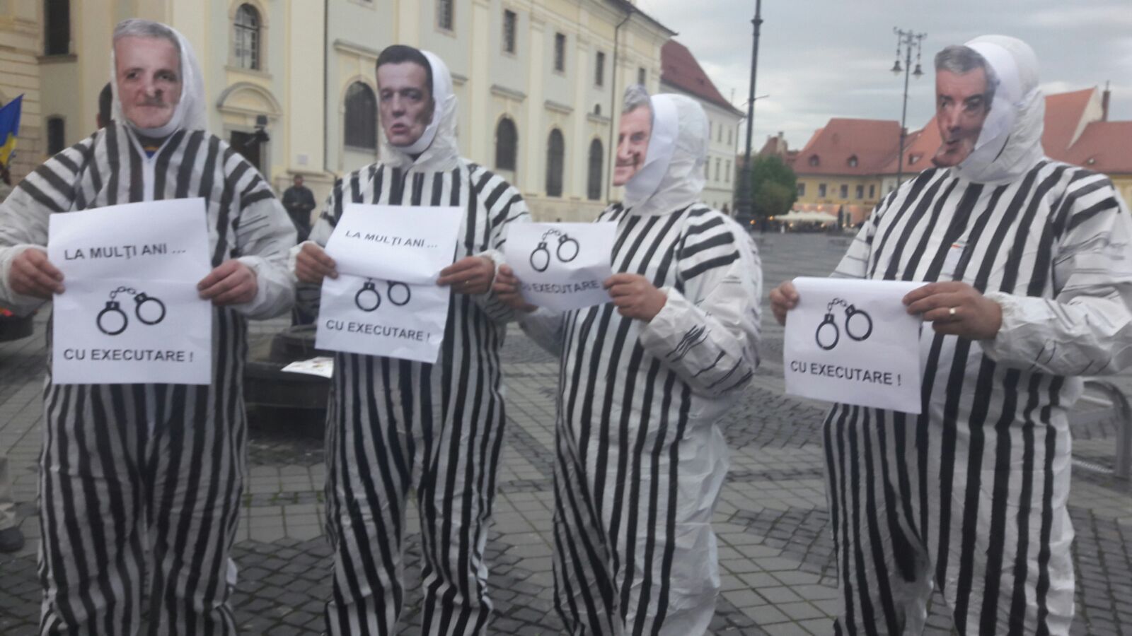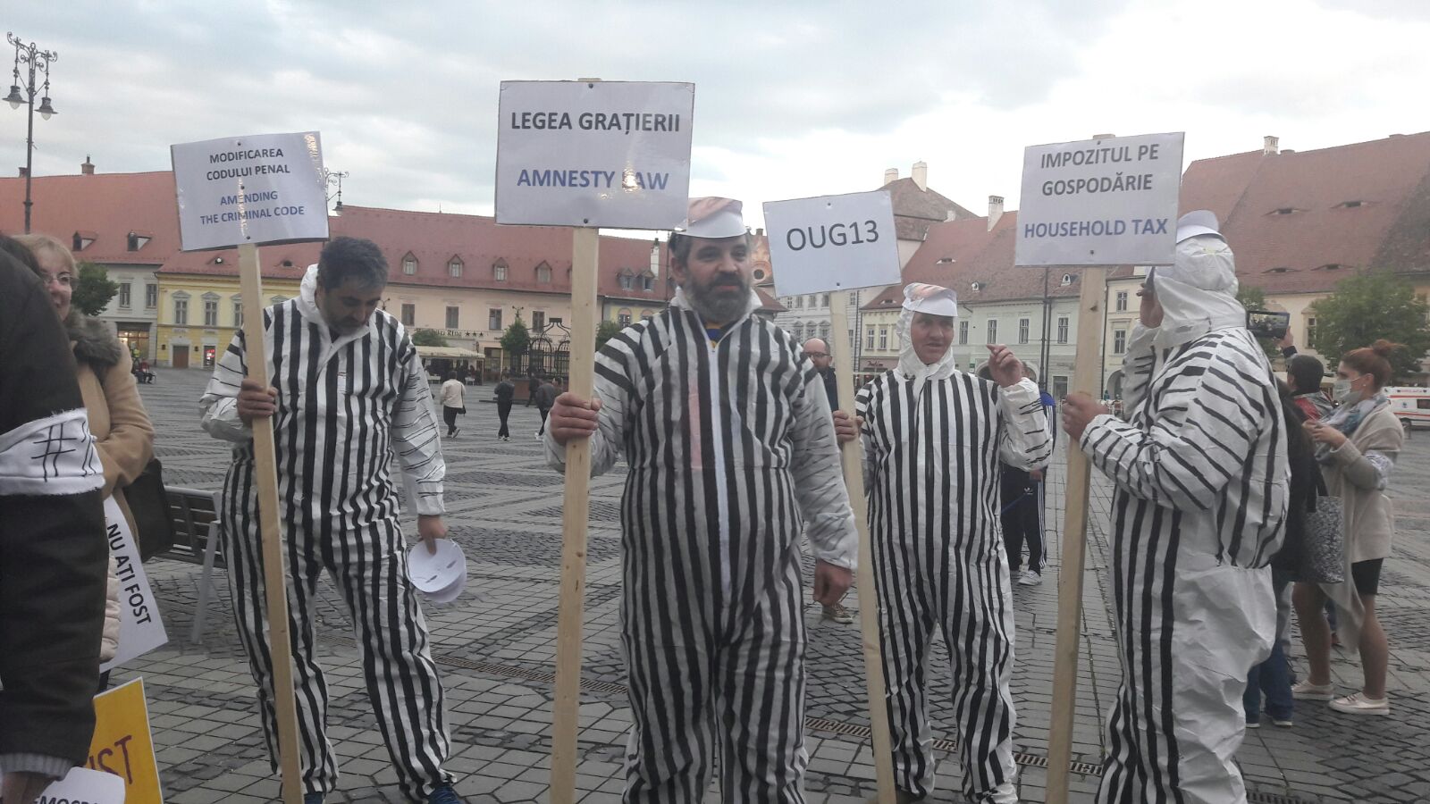 Unii dintre participanți s-au îmbrăcat în zeghe și simbolizează „Legea amnistiei”, „Legea grațierii”, „Impozitul pe gospodărie”, „Modificarea Codului penal”, ”OUG 13”. După ce s-au așezat în genunchi în Piața Mare din Sibiu, au intonat Imnul Național.