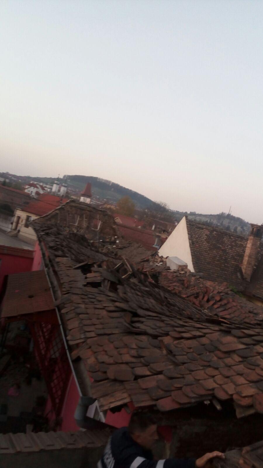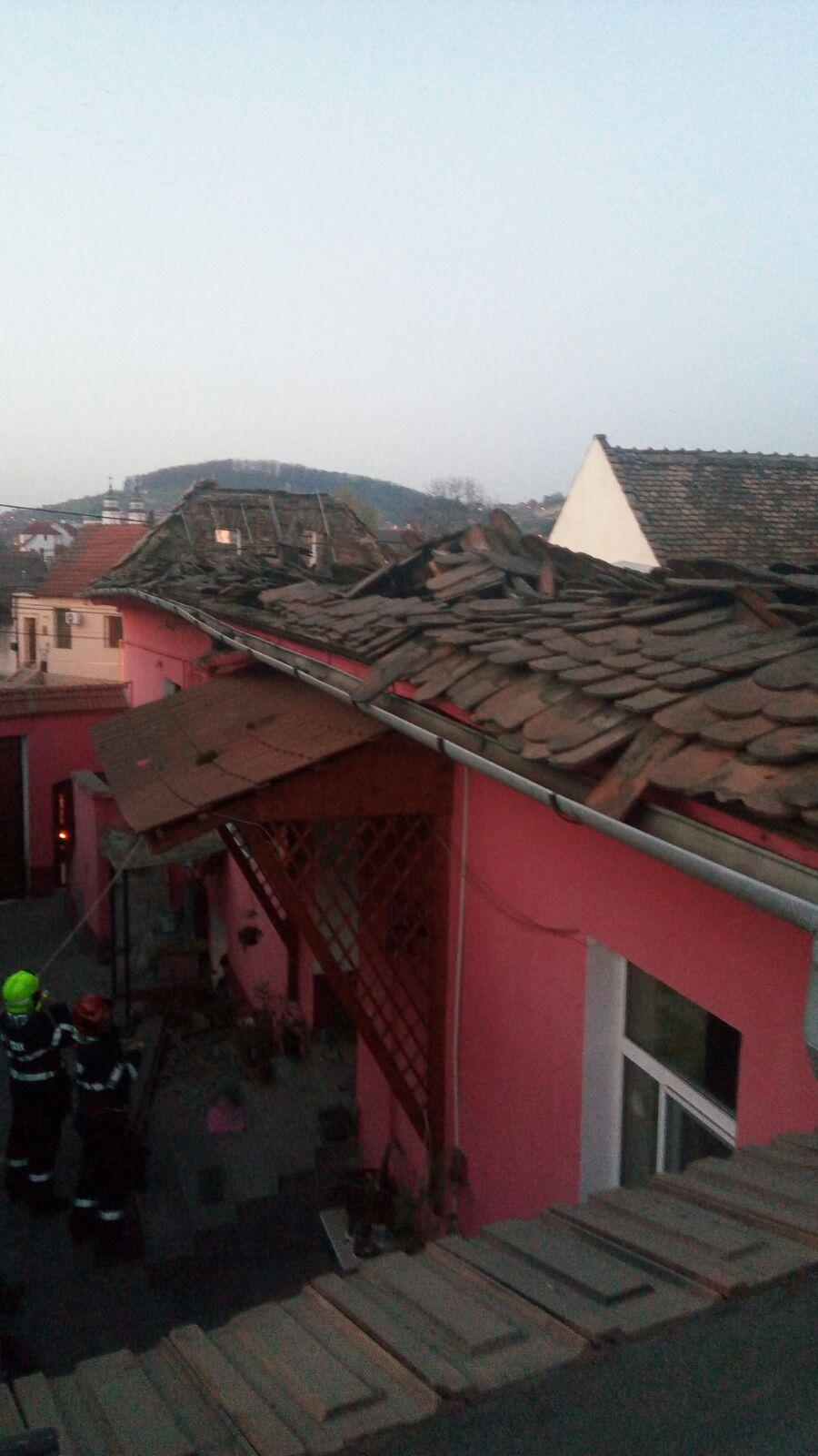 Acoperișul unei case de pe strada Episcop Ioan Suciu din municipiul Mediaș s-a prăbușit, joi dimineața. Acoperișul s-a prăbușit în totalitate, iar acoperișul unui imobil învecinat a fost și el afectat. 4 persoane au fost evacuate din imobil, iar zona a fost balizată. Pompierii din Mediaș se află la fața locului. Nicio persoană nu a avut de suferit în urma acestui incident. Vom reveni cu informații.