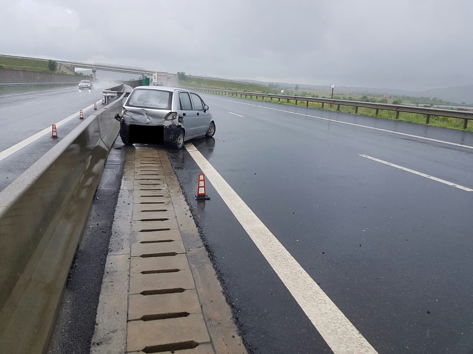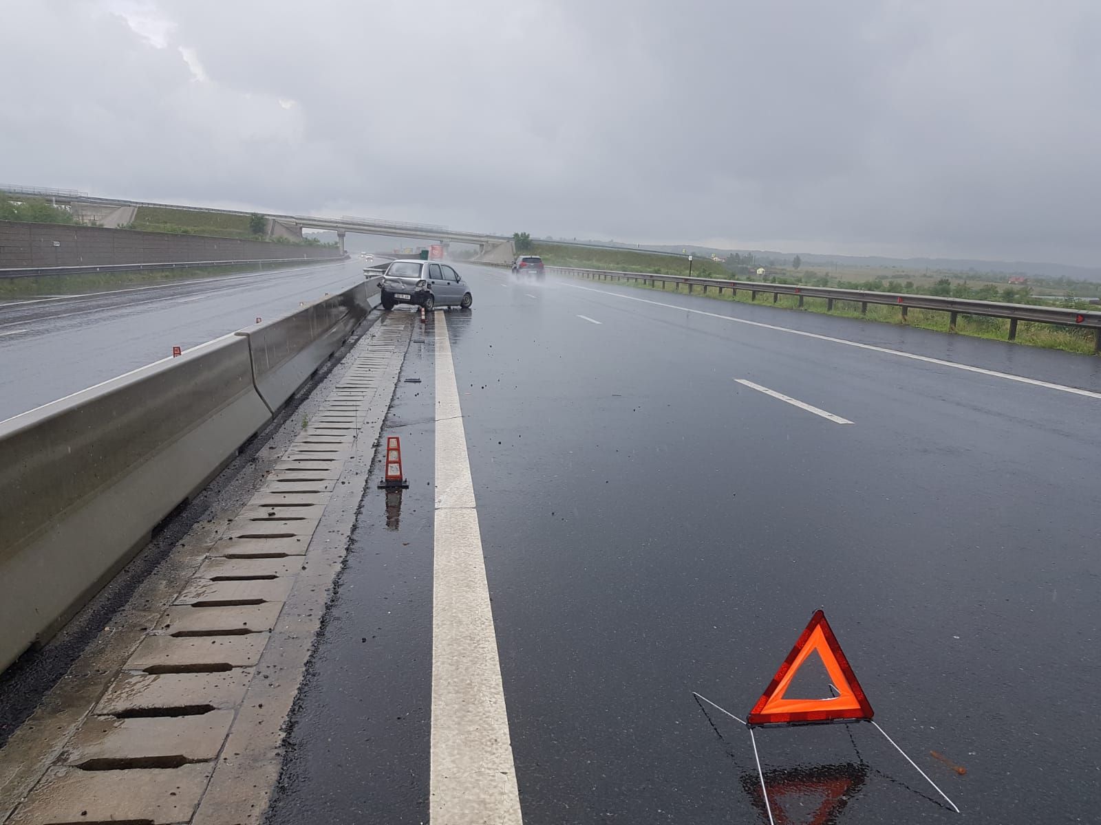 Accident rutier, luni după amiaza pe sensul Sibiu-Sebeș, pe A1, la kilometrul 265. Pe fondul vitezei neadaptate la carosabilul umed, o conducătoare auto în vârstă de 58 de ani din Sibiu a pierdut controlul direcției și a intrat în coliziune cu glisiera mediană. Sibianca a fost rănită în urma accidentului rutier, fiind transportată la spital de către un alt șofer. Traficul rutier nu a fost afectat de producerea acestui eveniment.