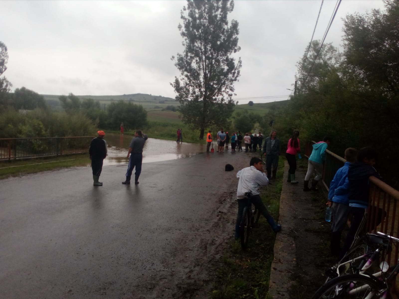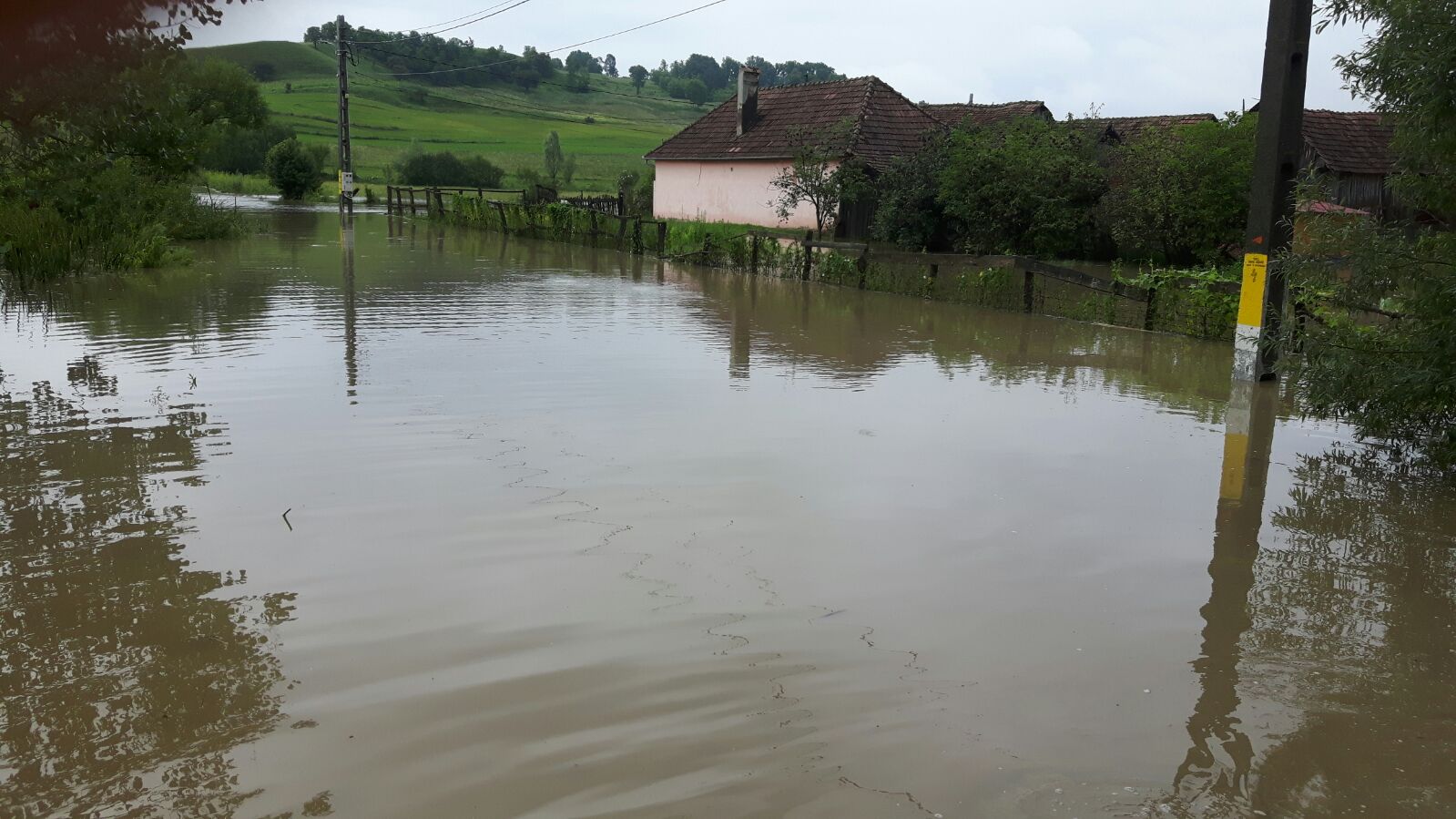 Ploaia a făcut probleme și între Sadu și Râu Sadului, unde doi stâlpi de telefonie din lemn s-au înclinat și riscau să cadă pe șosea.