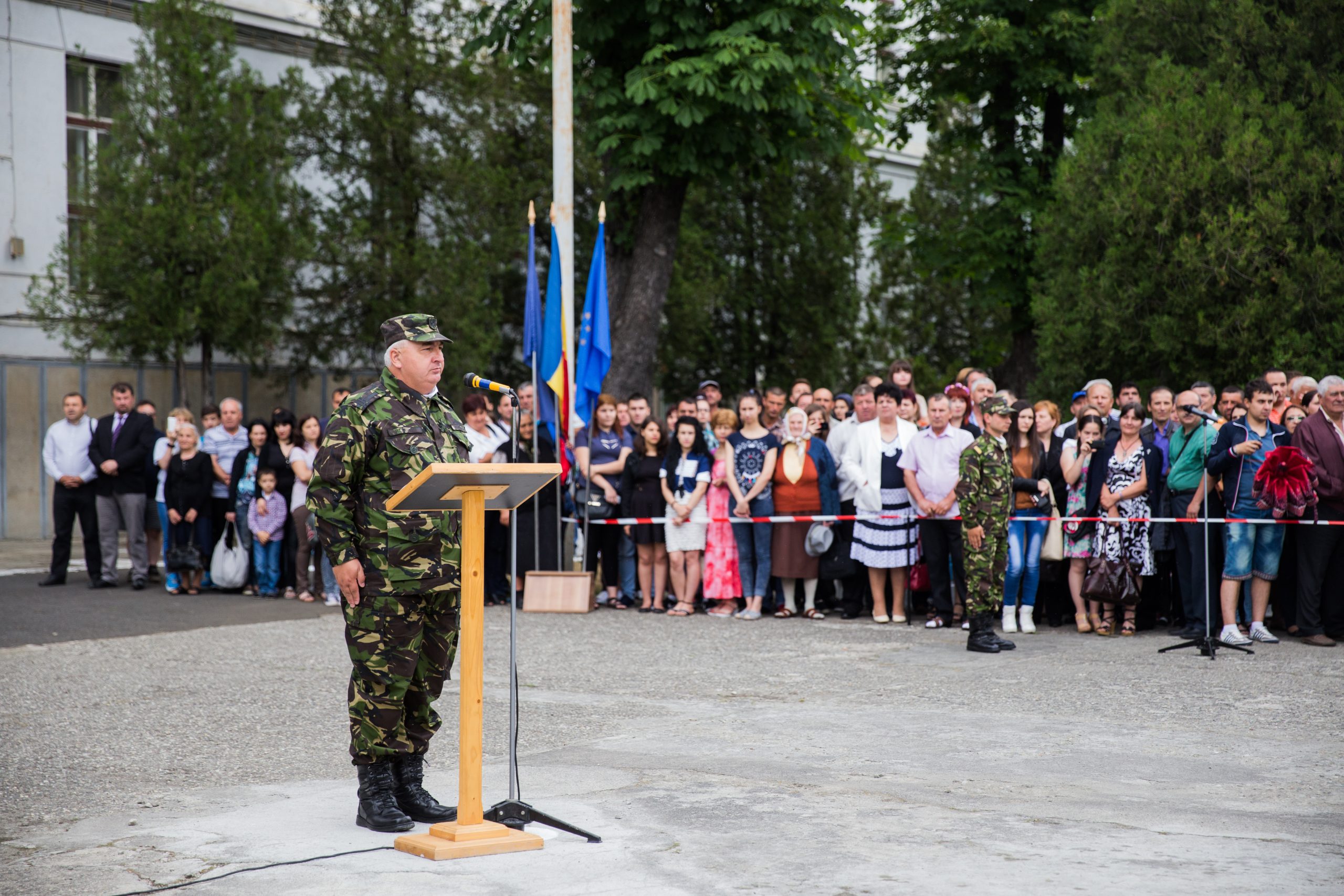 Aproximativ 200 de soldați profesioniști, seria aprilie 2015, au depus vineri, 19 iunie, la Școala de Aplicație pentru Unități Sprijin de Luptă „General Eremia Grigorescu”, jurământul militar, în cadrul unei ceremonii. La eveniment au participat Mircea Dușa, Ministrul Apărării Naționale, reprezentanți ai instituțiilor publice, printre care primarul Astrid Fodor și prefectul Ovidiu Sitterli, dar și invitați atât din cadrul instituțiilor universtare, culturale și militare, cât și părinți, rude și prieteni ai militarilor. Pregătirea acestor soldați a avut loc pe o perioadă de 10 săptămâni și urmează ca, începând cu 22 iunie să parcurgă etapa instrucției individuale de specialitate, de 8 săptămâni, timp în care se vor specializa în diferite arme, după care se vor îndrepta către unitățile militare unde au fost încadrați. „Astăzi, în întreaga țară, peste 900 de tineri depun jurământul de credință față de țară și popor, devenind soldați profesioniști. De altfel, în fiecare an Ministerul Apărării Naționale încadrează în medie 2.200, 2.300 de tineri, cam 1.500 soldați profesioniști și cam 600 provenind din sistemul de învățământ militar. Sigur că depunerea jurământului este unul dintre cele mai importante din viața unui militar. Se leagă să-și apere țara și poprul chiar cu prețul vieții. Le-am vorbit astăzi militarilor despre onoarea de a fi militar, despre faptul că armata este apreciată de români și una dintre cele mai vechi și stabile instituții ale statului român”, a spus ministrul Mircea Dușa, într-o declarație oferită presei după eveniment. Întrebat dacă sunt suficienți militari în armată, Dușa a răspuns: „În fiecare an ieșirile pe cale naturală, respectiv ieșirile în pensionare le completăm cu aceste angajări. În toamnă vom organiza o nouă selecție, după care vom angaja alți 600 de soldați profesioniști, plus promoțiile care termină învățământul superior.” Cu privire la redevenirea armatei ca obligatorie, Ministrul a spus că e necesar ca urgent să fie trecută prin Parlament legea privind rezervistul voluntar, ce ar putea reglementa această situație. Rezerviștii voluntari trebuie să fie români, bărbați și femei care sunt de acord ca, pe bază de contract, să ocupe funcții în structurile din cadrul MApN.