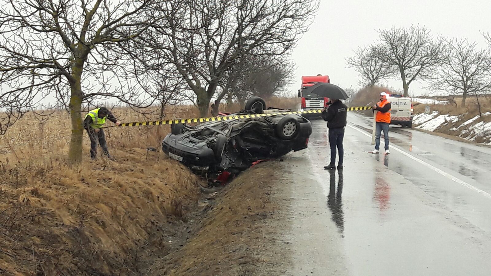 Din primele cercetări ale poliţiştilor la faţa locului, accidentul a avut loc din cauza unei depăşiri neregulamentare.