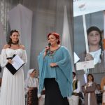 Spectacolul s-a dezlănțuit după aceea pe scenă, acolo unde Junii Sibiului și invitații lor au cântat și au dansat fără oprire, spre încântarea zecilor de mii de spectatori. Au urat bun venit ansamblurilor din cele șase țări doamna Daniela Cîmpean, președinta Consiliului Județean Sibiu, și doamna Silvia Macrea, directorul festivalului. Deschiderea a fost urmată de două surprize: doamnei Silvia Macrea senior, soția maestrului Ioan Macrea, i s-a decernat o Diplomă de excelență la aniversarea a 80 de ani de viaţă și în semn de apreciere a contribuţiei aduse la valorificarea jocului popular, atât în calitate de dansator la Junii Sibiului, cât şi în calitate de profesor, care a îndrumat paşii a mii de copii pe calea jocului popular românesc. Diploma a fost conferită de Consiliul Județean Sibiu și C.J.C.P.C.T. „Cindrelul-Junii” Sibiu.