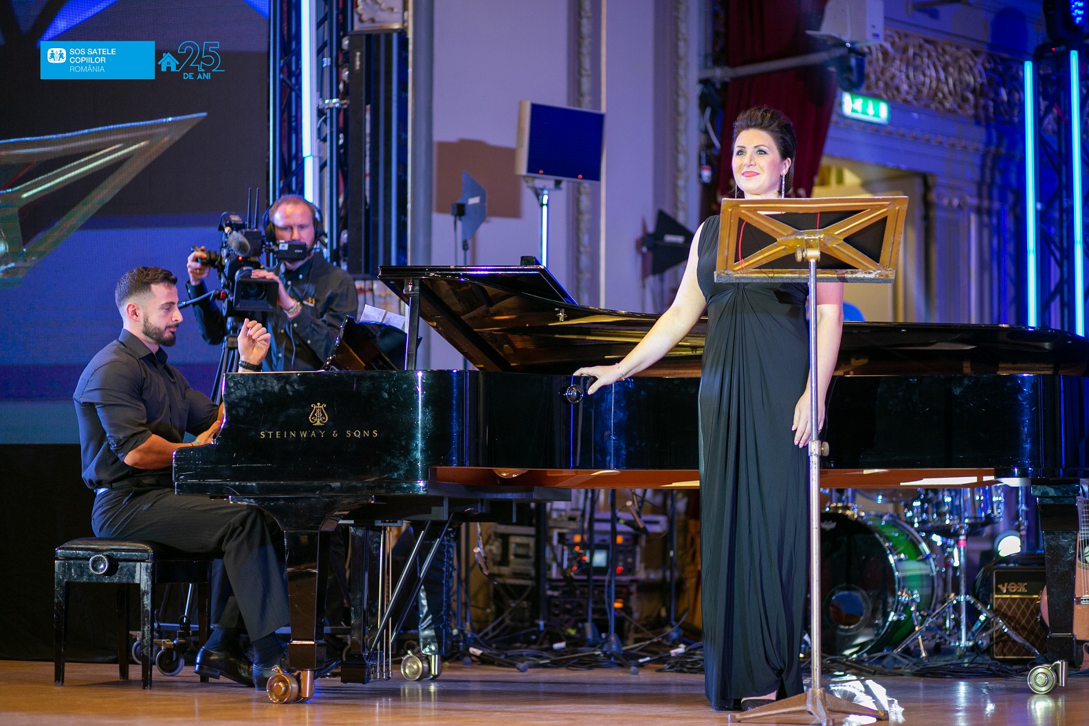Momente pline de emoție au fost aduse pe scenă și de către două foste beneficiare SOS. Diana Borcea a susținut un moment artistic, acompaniată la pian de Mihai Murariu, iar Oana Dancu a fost vocea tinerilor care au avut șansa unei copilării frumoase în Satele SOS.