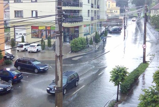 Precipitațiile abundente din Sibiu au provocat mici inundații în oraș duminică după-amiaza.