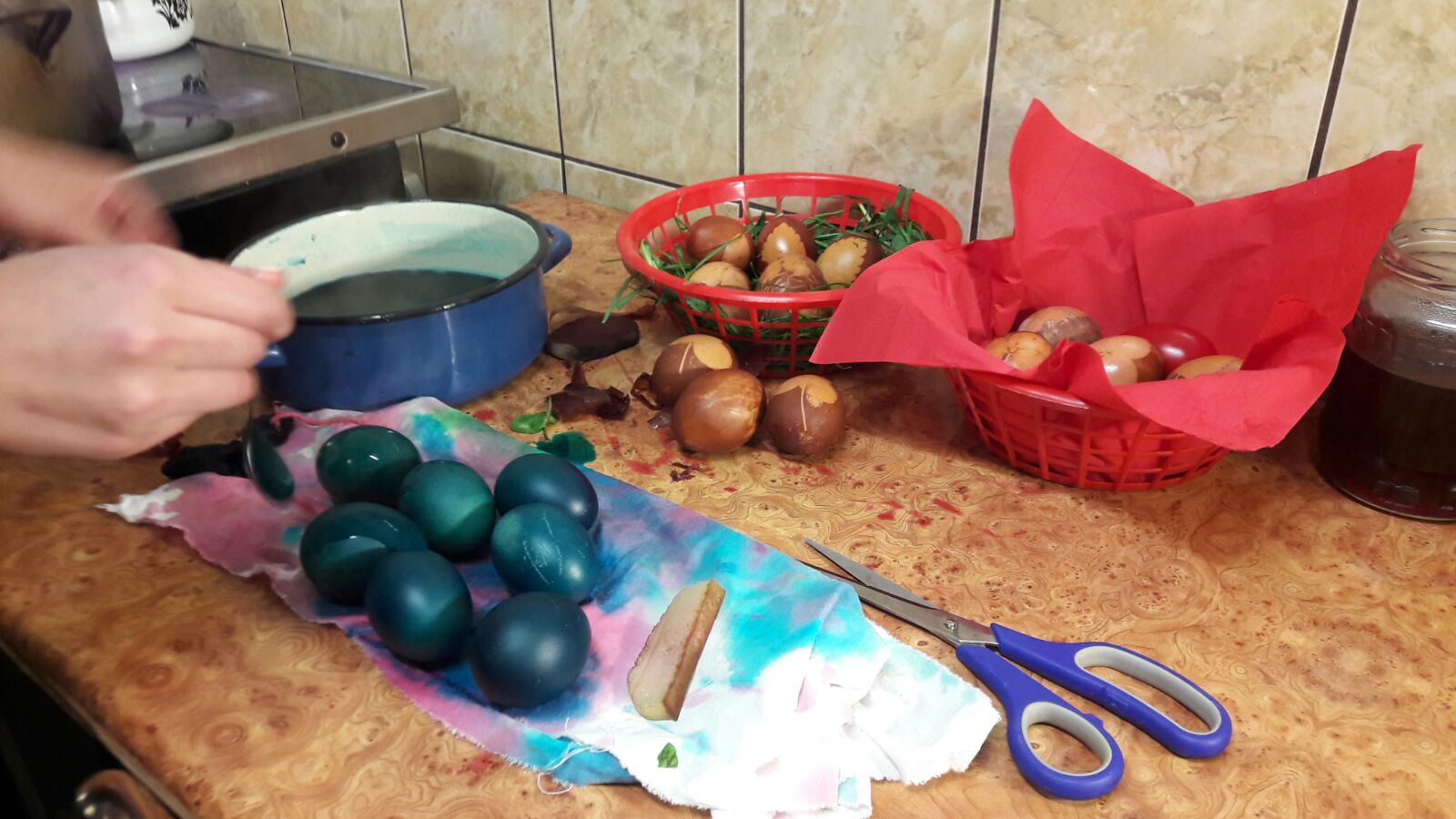 „După ce ouăle au fiert le scoatem din apă, tăiem ciorapul și le ungem cu slănină pentru strălucire cât încă sunt calde. Am lucrat timp de câteva ore la această parte a tradiției noastre și ni s-au alăturat și studenții străini. Suntem bucuroși că putem să împărtășim cu ei o parte din specificul sărbătorilor noastre”, spune Iulia Rof.