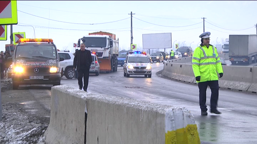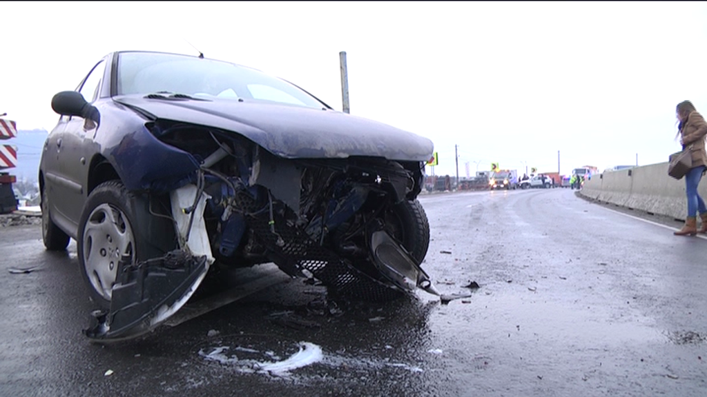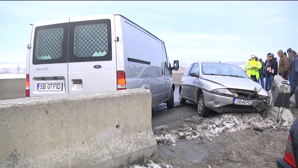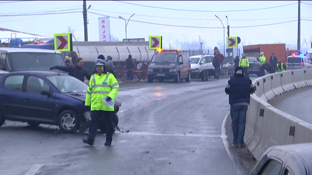 Actualizare: Tamponare în lanț din cauza poleiului, 10 mașini s-au ciocnit