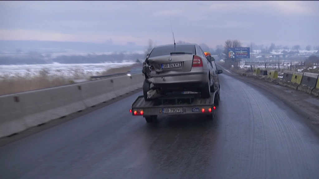 „Din cauza poleiului s-a întâmplat, mașina din față a derapat din cauza poleiului, au am evitat să nu intru în ea și am fost acroșat din spate.”
