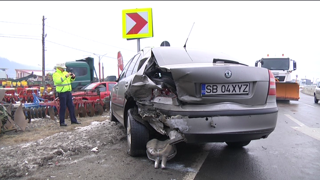 „Pe DN1, pe raza localității Veștem a avut loc un eveniment rutier în care au fost implicate un număr de 10 autoturisme, printre care avem un accident rutier în care au fost implicate 4 dintre cele 10 autoturisme care s-a soldat cu vătămarea corporală ușoară a unepe persoen în vârstă de 80 de ani care a fost transportată la Spitalul Județean Sibiu pentru îngrijiri medicale. Cauzele accidentului rutier sunt neadaptarea vitezei la condițiile de carosabil acoperit cu polei.” a declarat Dănuț Popa, de la Poliția Rutieră Sibiu