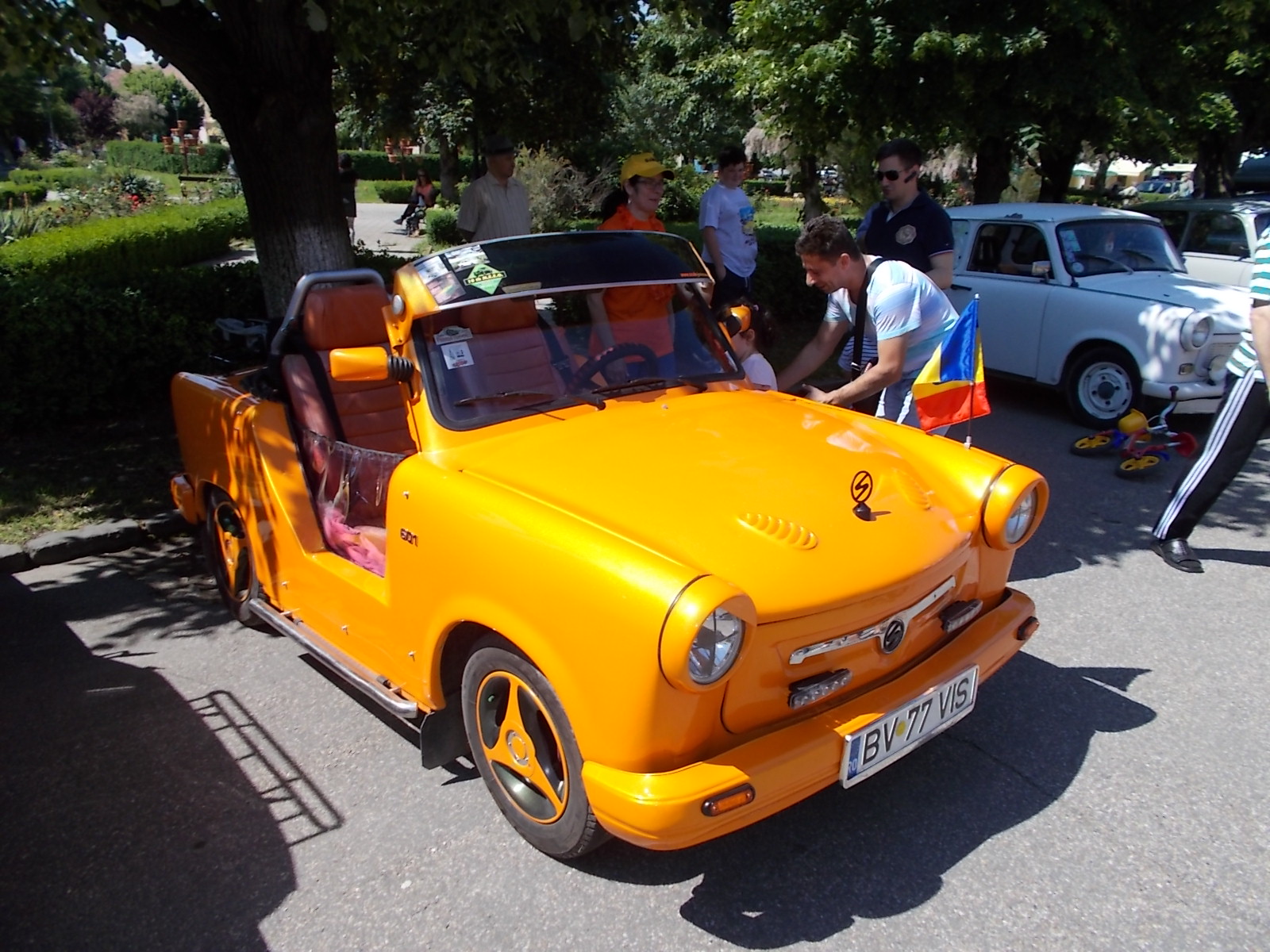 Fără doar și poate, vedeta paradei a fost, însă, un Trabant decapotabil, de culoare portocalie, aflat în proprietatea unei familii din Brașov, Nicuța și Lotzy Szafian, care a atras toate privirile celor prezenți, toți medieșenii recunoscând că este o mașină ca o bijuterie. Nicuța Szafian este foarte încântată de mașina familiei, despre care spune că a fost modificată de soțul său. „Este un Trabant decapotabil, cu două locuri, singurul din țară omologat. Cu el, pe roți, am fost la toate întâlnirile din țară, am fost chiar și în Ungaria, Germania. Când ne-am căsătorit acum 35 ani, prima mașină a fost un Trabant, și după 35 ani am revenit la prima dragoste. Ceilalți participanți la trafic se uită admirativ la noi. Am fost cu Trabantul peste tot”, a spus Nicuța.