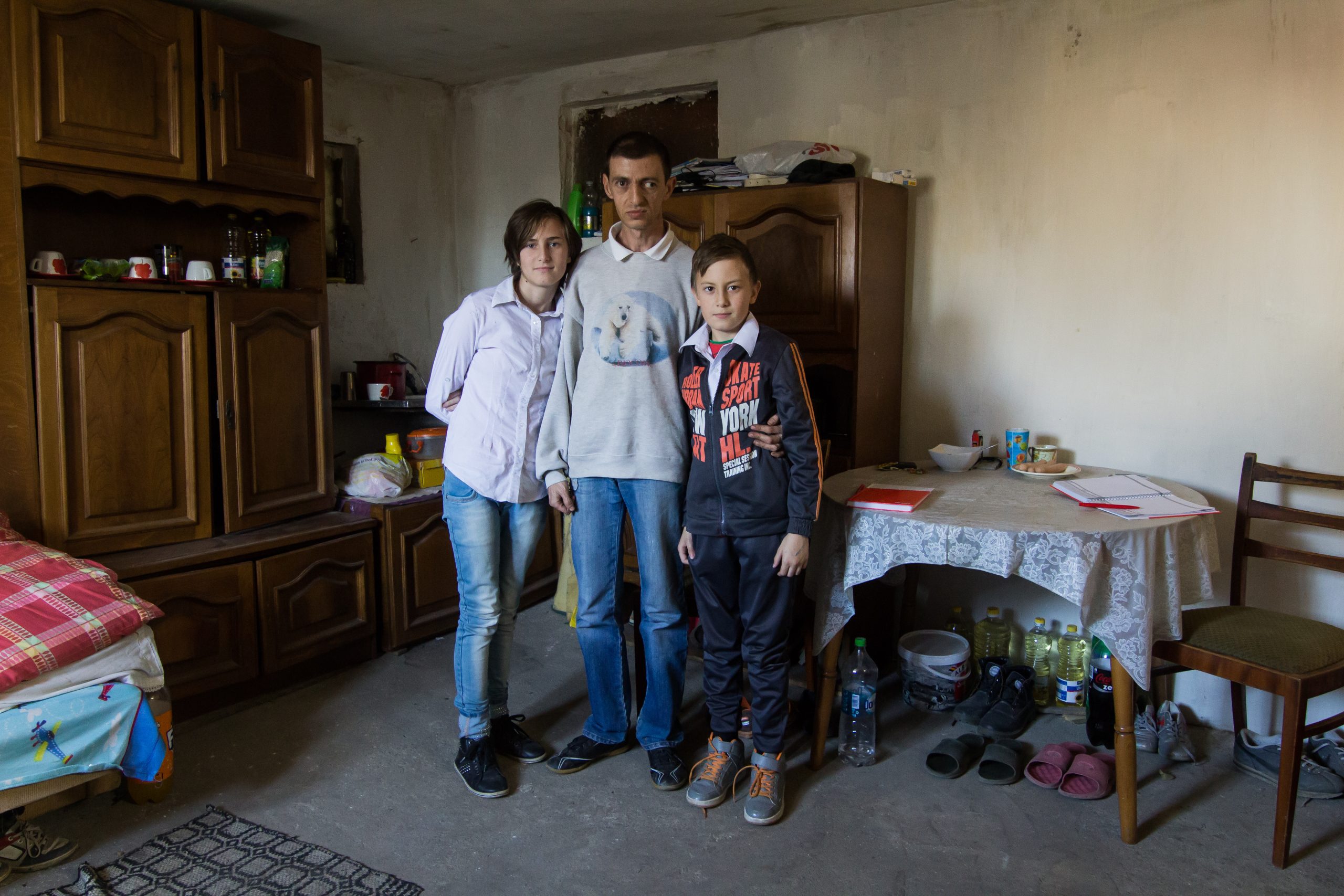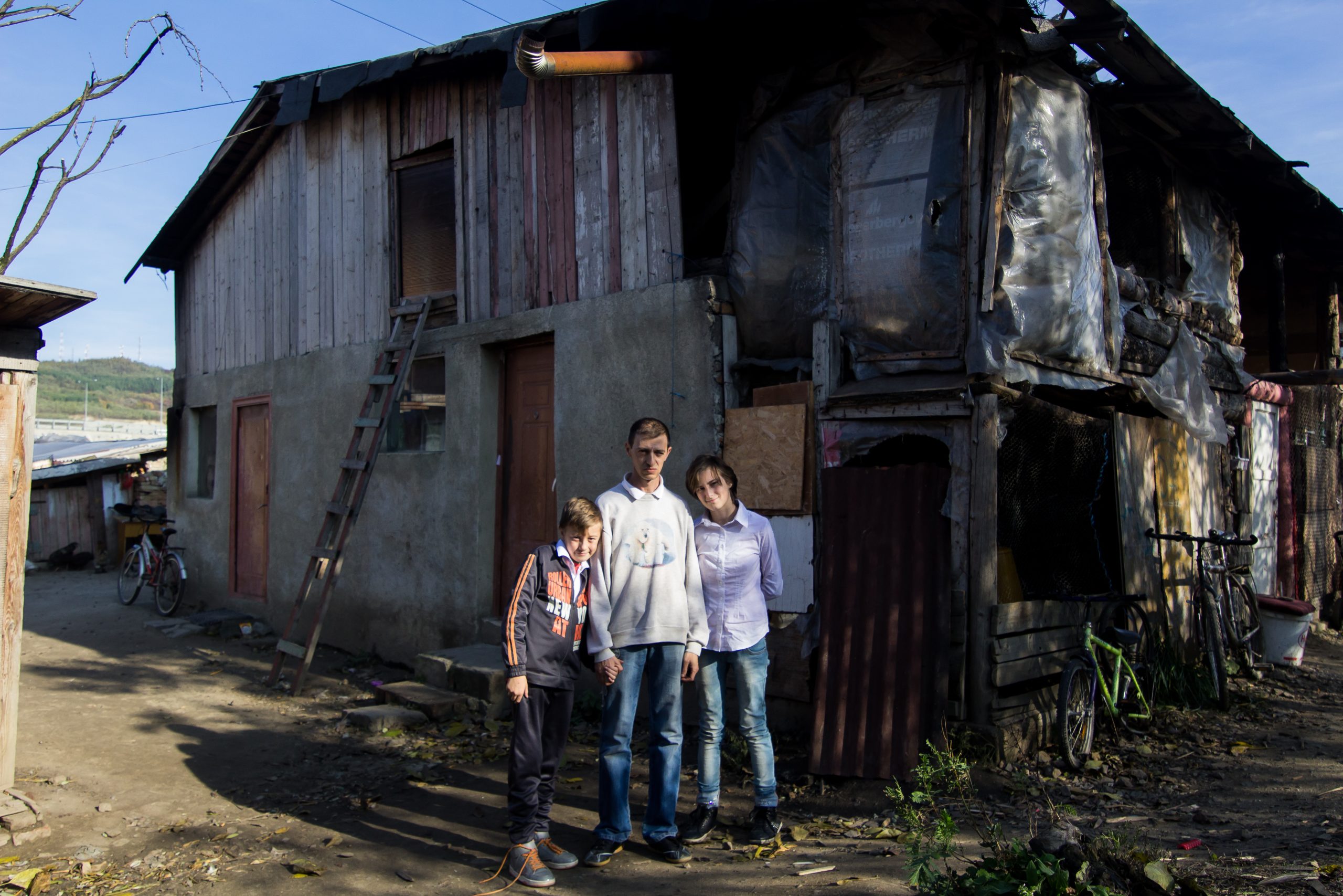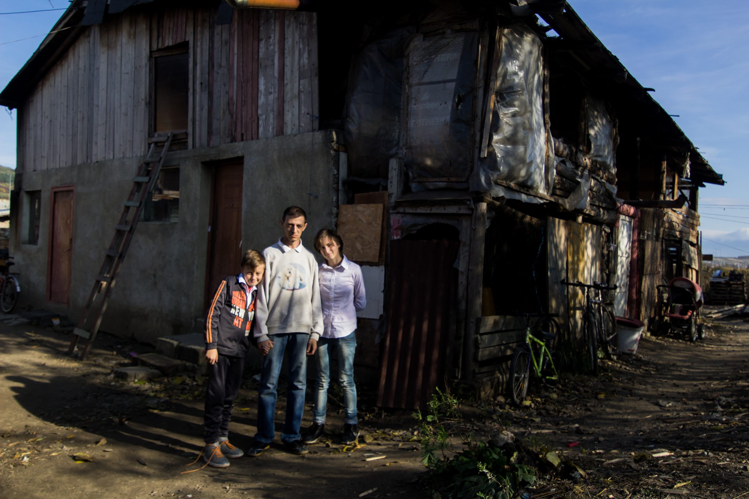 Într-un fost grajd, aproape de centura ocolitoare a Sibiului, printre gunoaie, crengi rupte și haine întinse la uscat, un parfum de mâncare proaspăt gătită ne atrage. Ușa se deschide cu un scârțâit, iar doi copii ne fac loc entuziasmați și ne lasă să intrăm. Un bărbat, peste a cărui piele a trecut timpul într-un mod nemilos, ne întâmpină cu un zâmbet venit de undeva de după privirea pierdută în greutăți. Copiii însă continuă să zâmbească sincer.