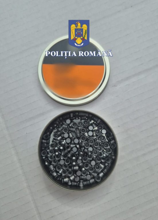Totodată, în autoturism a fost identificat un pistol cu aer comprimat precum și un recipient cu aproximativ 2700 de alice.