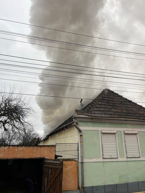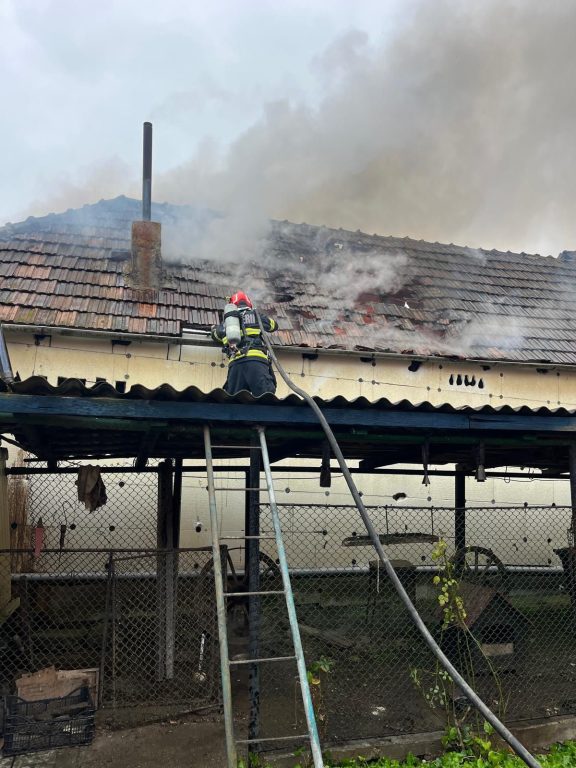 UPDATE: „Pompierii au lichidat incendiul care a distrus interiorul casei și bunurile aflate în interior precum și o parte din acoperiș (aproximativ 150 mp).