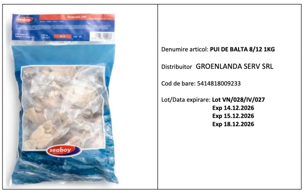 ANSVSA a emis alerte de retragere de la comercializare pentru pui de baltă comercializați de producătorul Galana Seafood în Carrefour și Metro.
