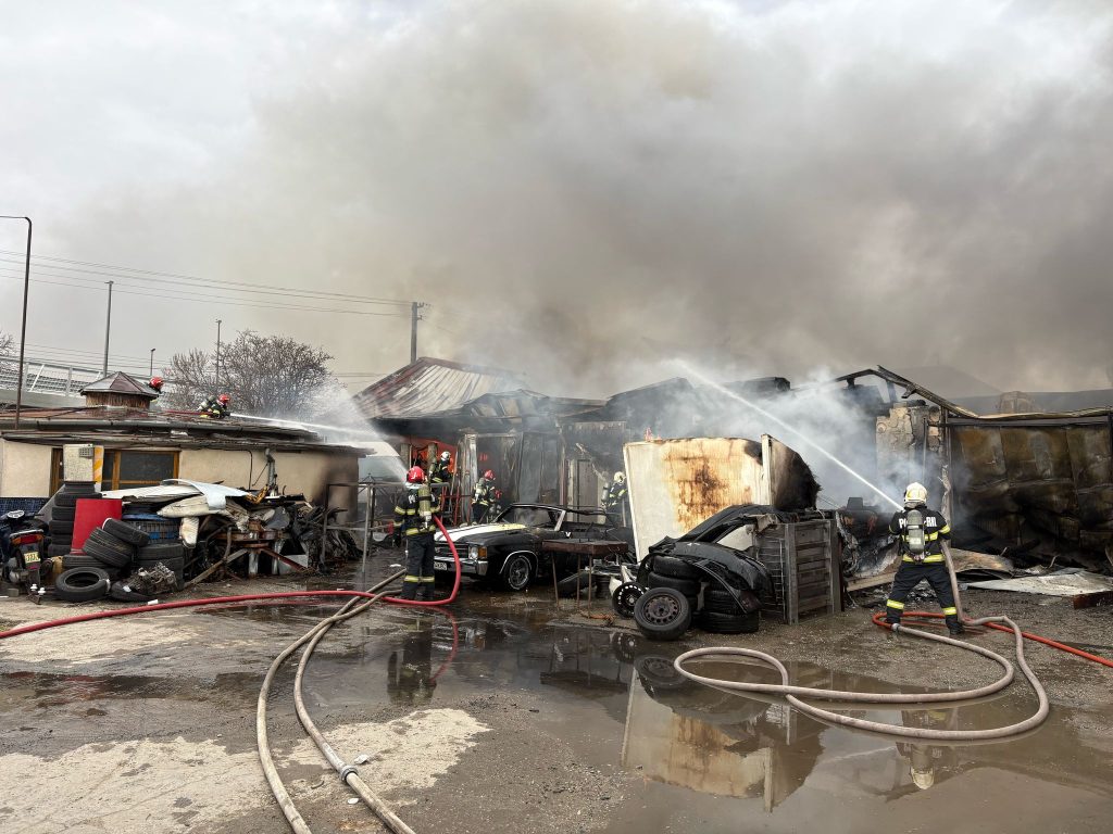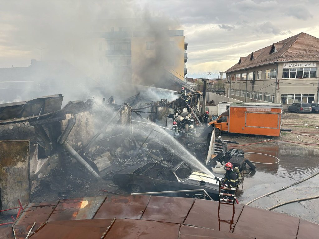 UPDATE 6: „În urma incendiului au fost afectate o hală de aproximativ 450 de metri pătrați în interiorul căreia erau trei autoturisme, două microbuze și patru motociclete, toate fiind distruse în totalitate.