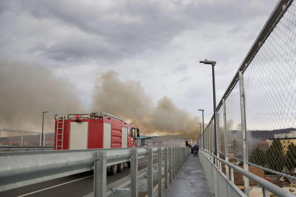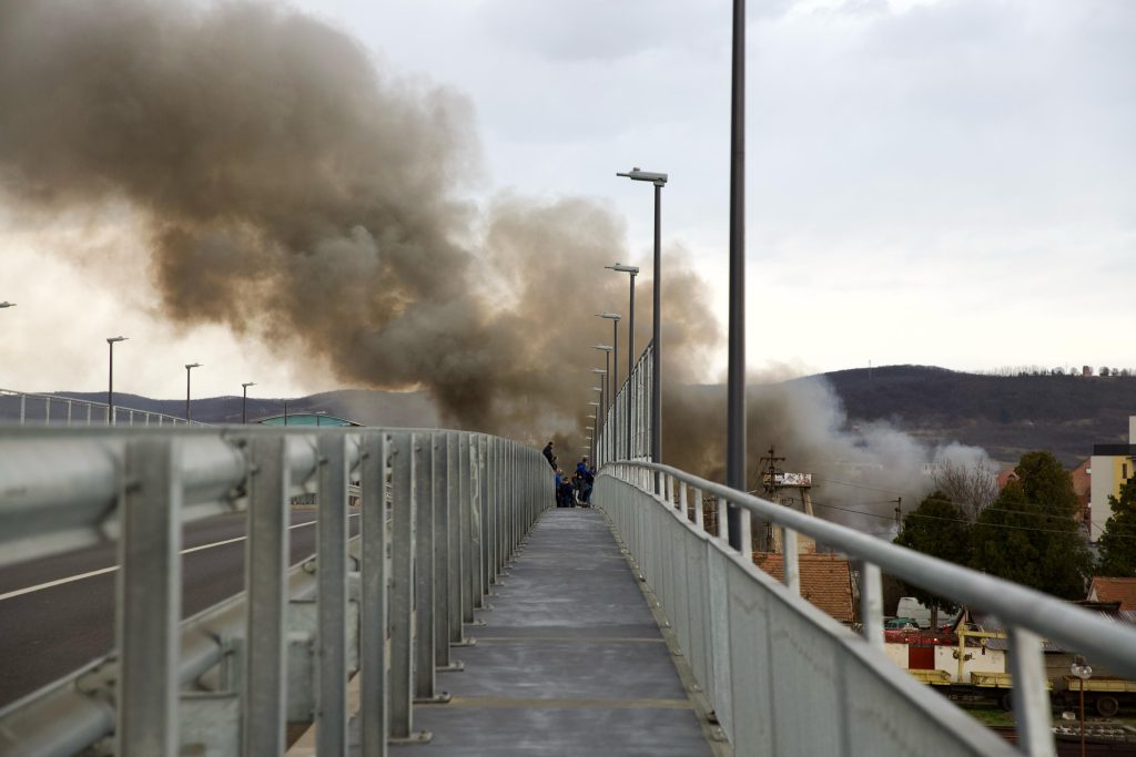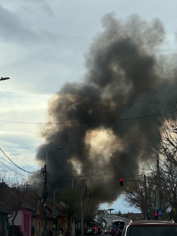 UPDATE: Circulația autovehiculelor pe Podul Gării, în municipiul Sibiu, este oprită din cauza degajărilor masive de fum, ca urmare a manifestării incendiului din apropiere.