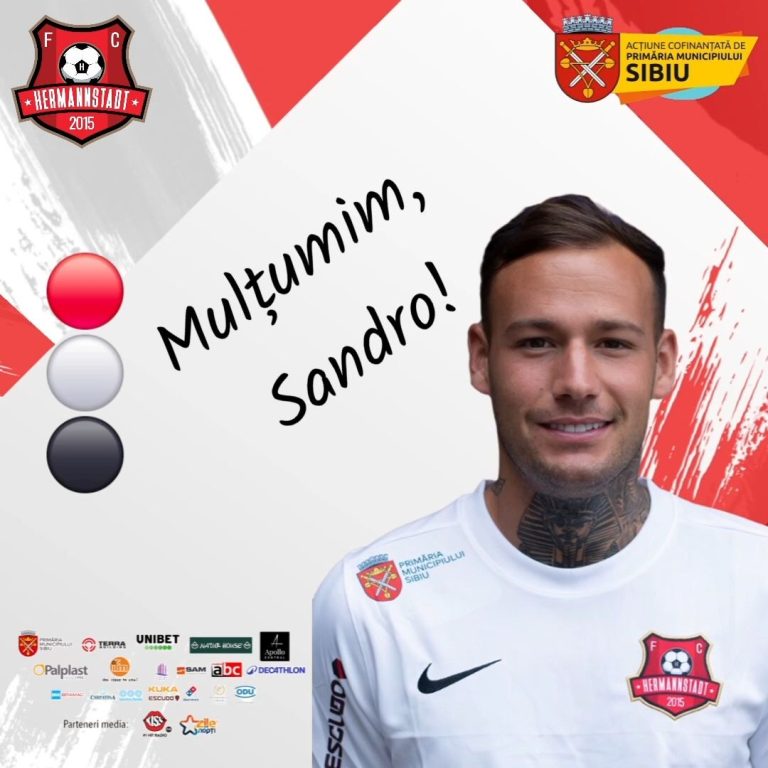 „Înțelegerea contractuală dintre A.F.C.Hermannstadt și mijlocașul italian a încetat, iar (și) pe această cale îi dorim lui Sandro mult succes în următoarele provocări pe care și le va asuma în carieră”, a transmis FC Hermannstadt pe Facebook.