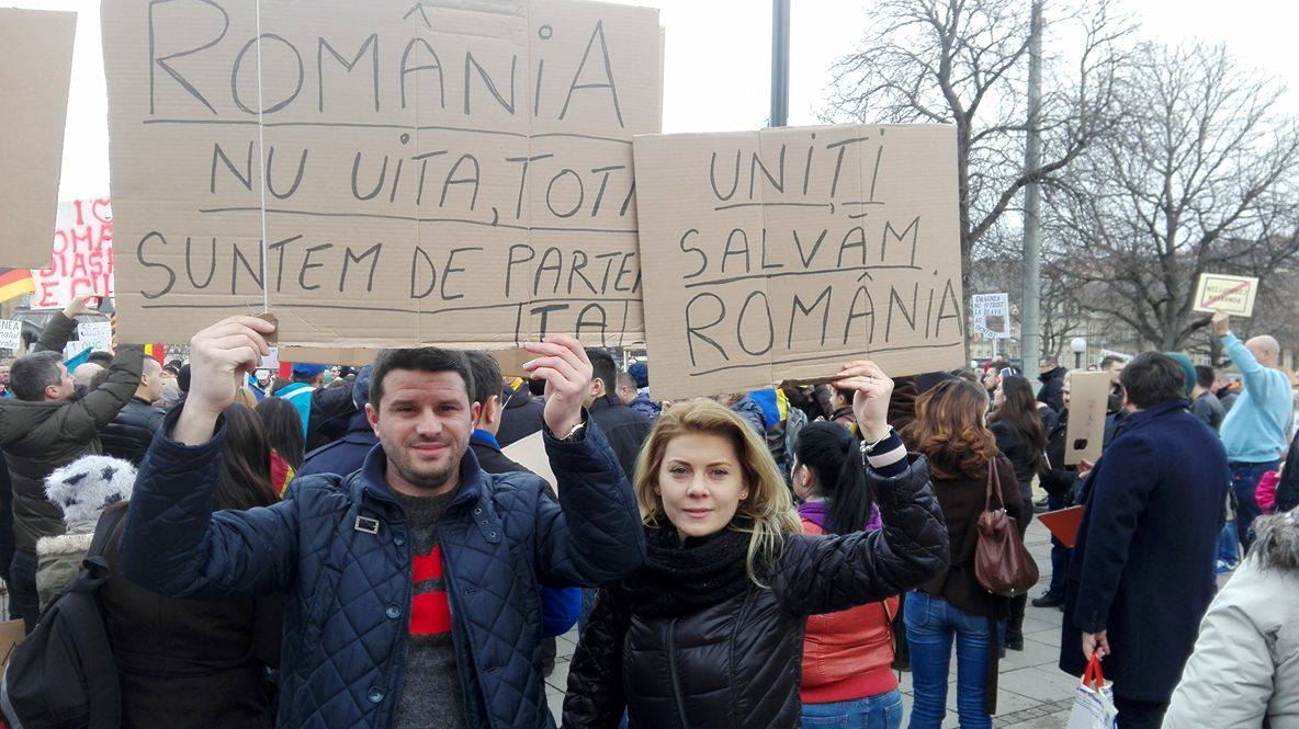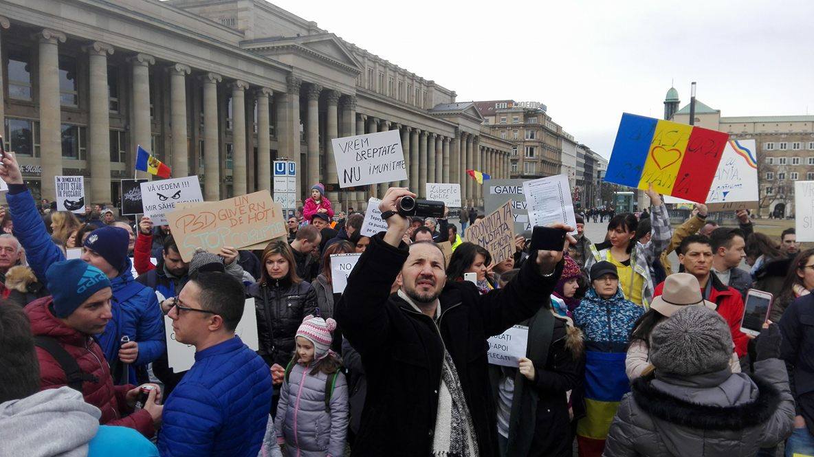 ”Romania tara mea nici aici nu te pot uita. Sunt departe dar cu gandul la tara noastra. Uniti salvam Romania”, spune sibianul stabilit la Stuttgart care ne-a transmis fotografiile si imaginile.