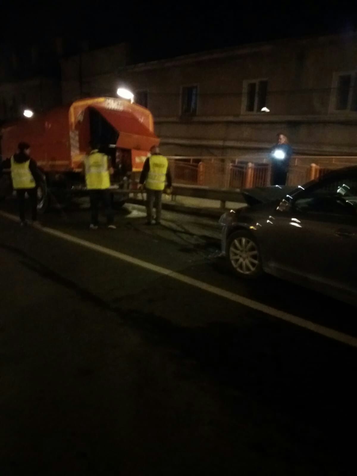Un bărbat de 60 de ani din Cristian a fost accidentat grav, vineri seara, în timpul unei intervenții la rețeaua de apă-canal pe Podul Gării din Sibiu. Un șofer din Sibiu, în vârstă de 62 de ani care circula pe Podul Gării spre centru, pe fondul nepăstrării distanței și a conducerii sub influența alcoolului, a intrat în coliziune cuo autoutilitară staționată și semnalizată regulamentar pe pod, accidentând grav șoferul autoutilitarei care se afla în spatele mașinii efectuând unele manevre de intervenție la rețaua de apă-canal. Bărbatul rănit grav este din Cristian și are 60 de ani. În momentul în care a fost testat cu aparatul etilotest, șoferul vinovat de producerea accidentului avea o alcoolemie de 0,88 miligrame/litru alcool pur în aerul expirat. Șoferul responsabil de producerea accidentului s-a ales cu dosar penal, el fiind cercetat pentru vătămare corporală din culpă și conducere sub influența alcoolului.